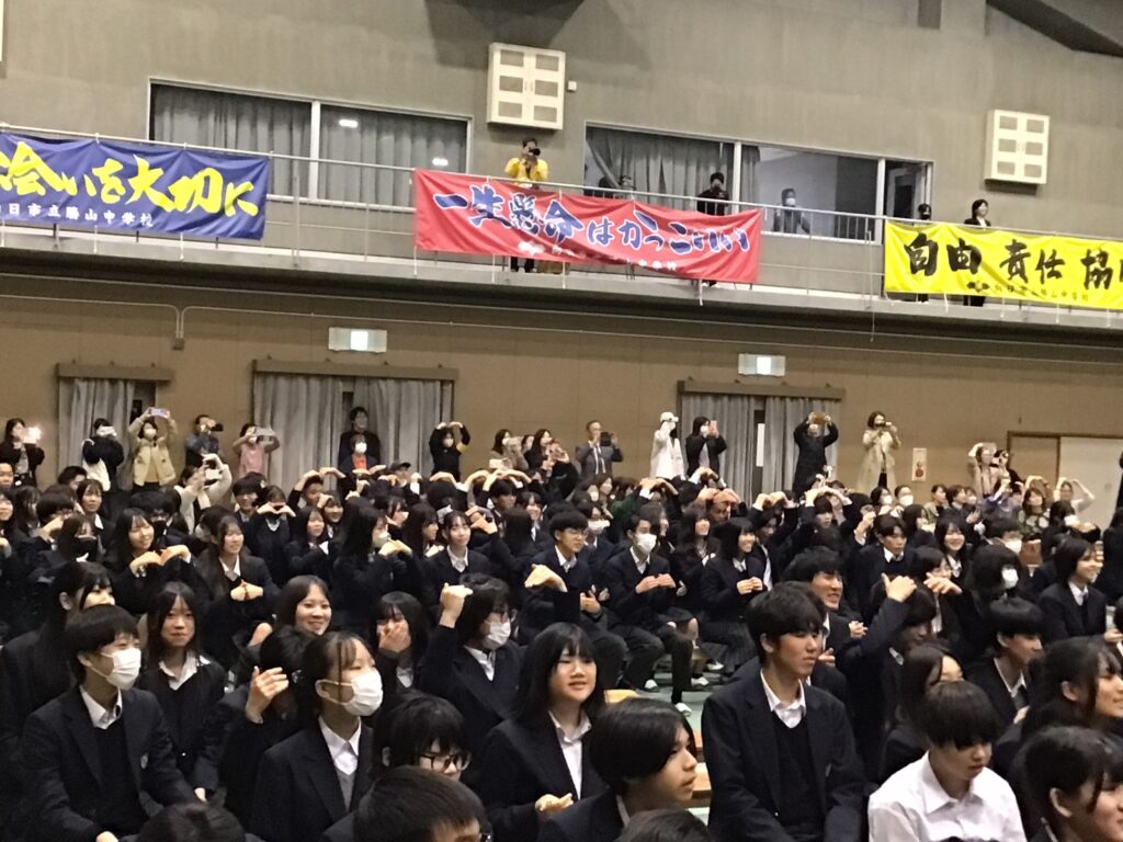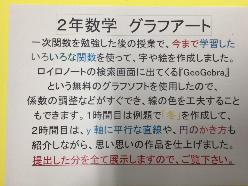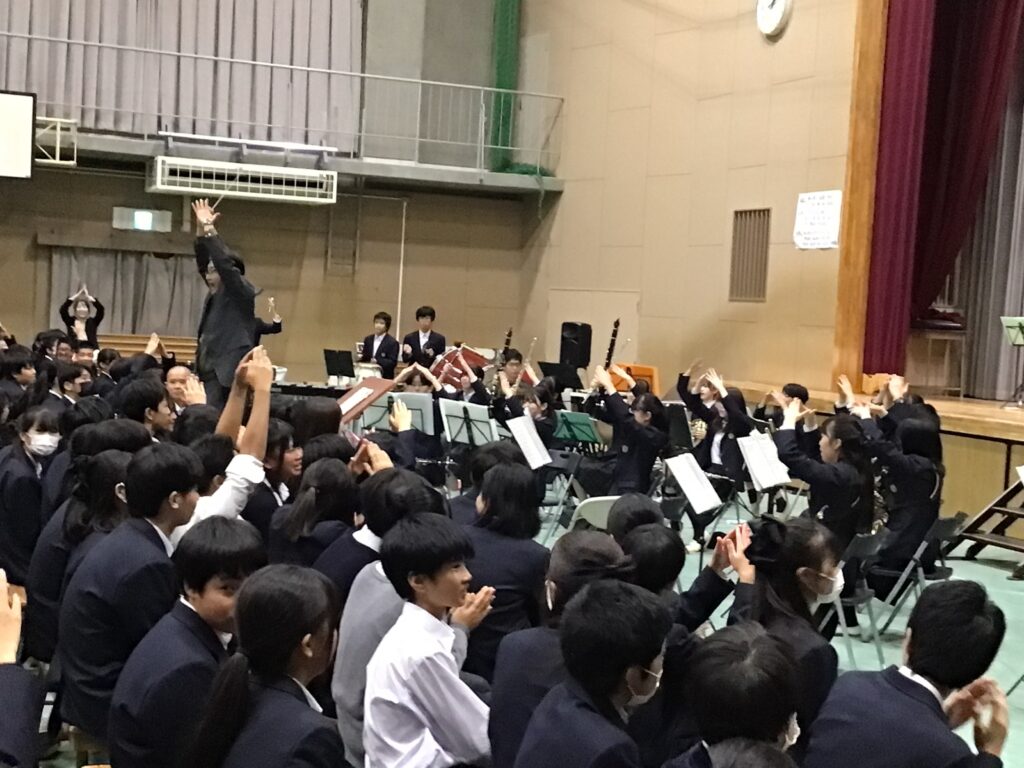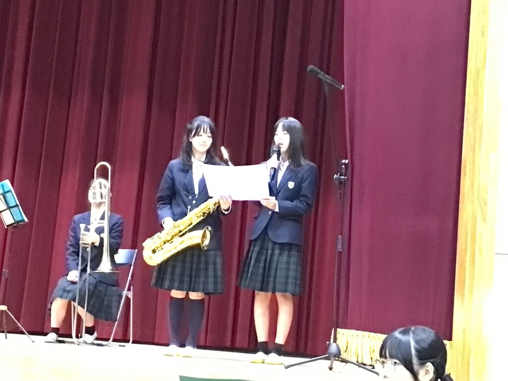 2日間にわたる文化祭では、美術部・理科部の頑張りも随所に見られました。 また、向日が丘支援学校の生徒のみなさんからの作品も本校の教科や総合的な学習の 作品と一緒に展示させていただきました。 2日目の午後からの吹奏楽部による発表では、部員のかわいいダンスに、 ゲスト指揮者(!?)の登場もあり、演奏者と観客が一体化して大いに盛り上がりました。 なお、二日間にわたって文化祭を見に来ていただいた民生委員さんによる 勝中生への嬉しいメッセージも頂戴しております。 お忙しい中、ご来校いただきありがとうございました。