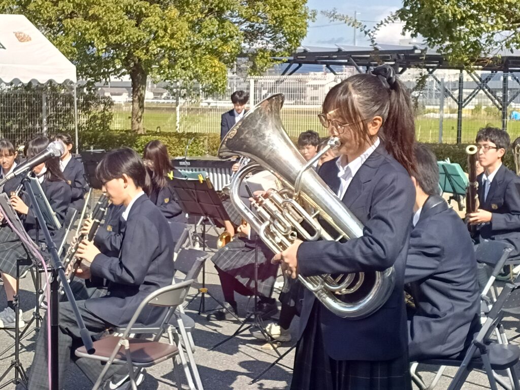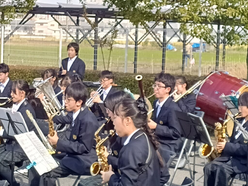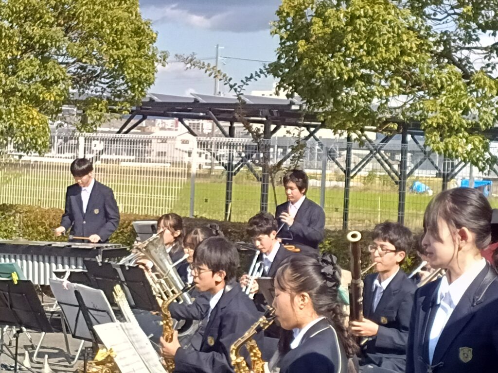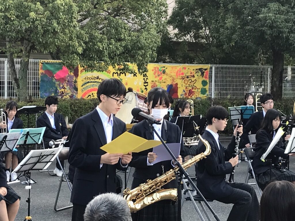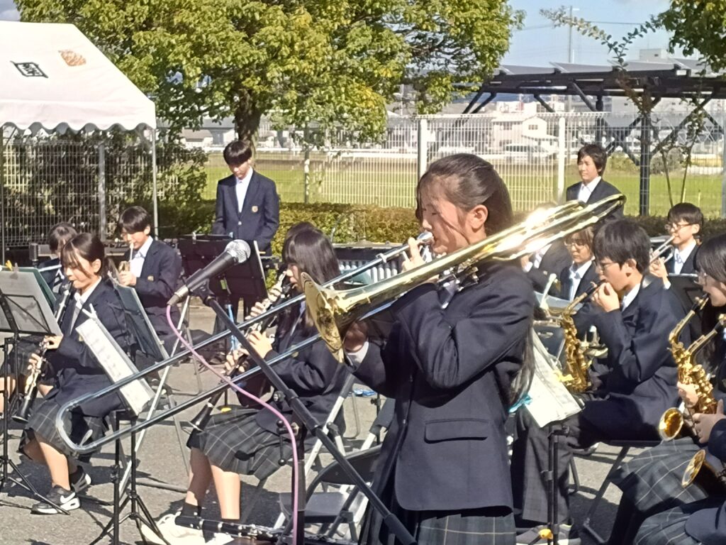 11月1日に、社会福祉法人向陵会が運営する、ひまわりフェスタに 本校の吹奏楽部が招待を受けて演奏しました。 冒頭では、「『一奏心響』をモットーに、心を込めた演奏と感動できる音楽、 地域に愛されるバンドを目指して、毎日元気に活動しています。」と、 元気いっぱい挨拶をして、全4曲の演奏で地域・社会を明るくしました。