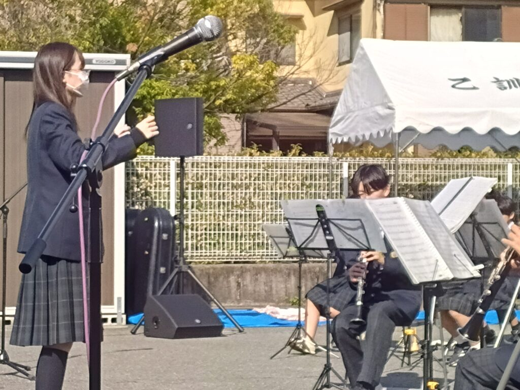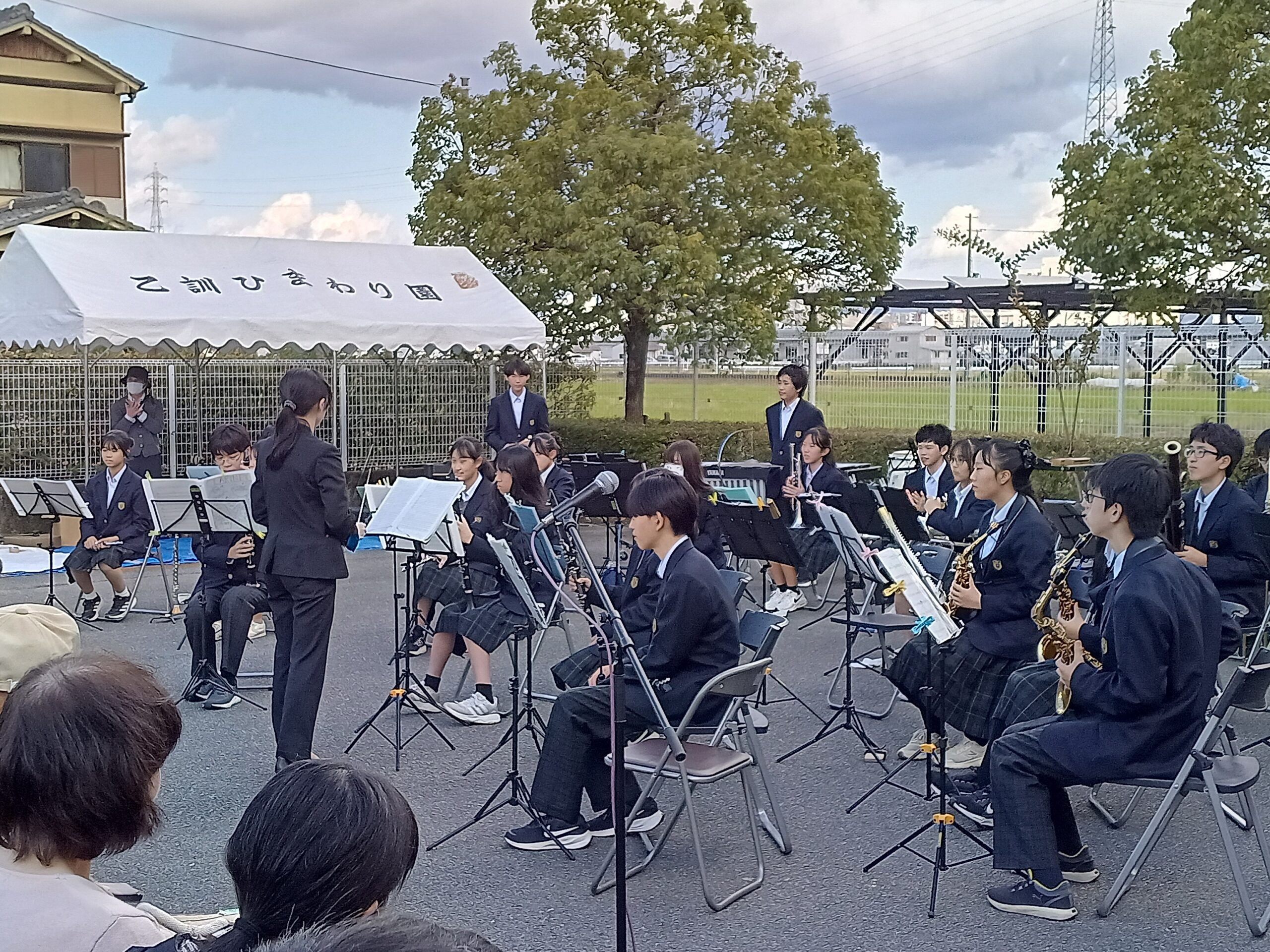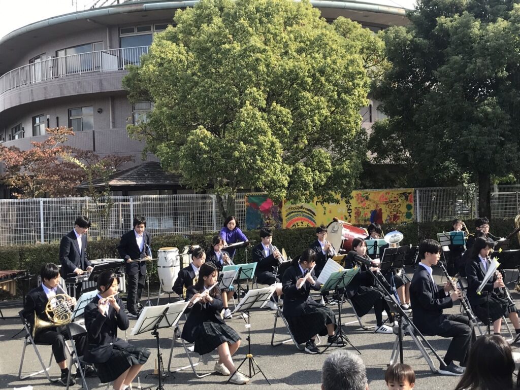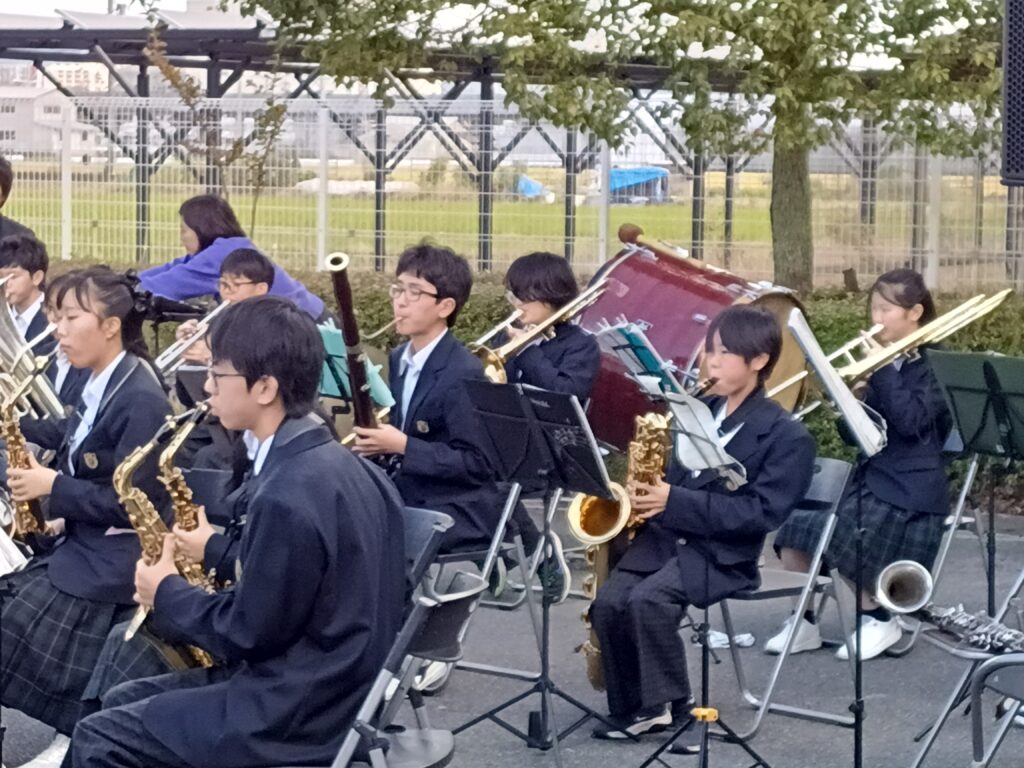 11月1日に、社会福祉法人向陵会が運営する、ひまわりフェスタに 本校の吹奏楽部が招待を受けて演奏しました。 冒頭では、「『一奏心響』をモットーに、心を込めた演奏と感動できる音楽、 地域に愛されるバンドを目指して、毎日元気に活動しています。」と、 元気いっぱい挨拶をして、全4曲の演奏で地域・社会を明るくしました。