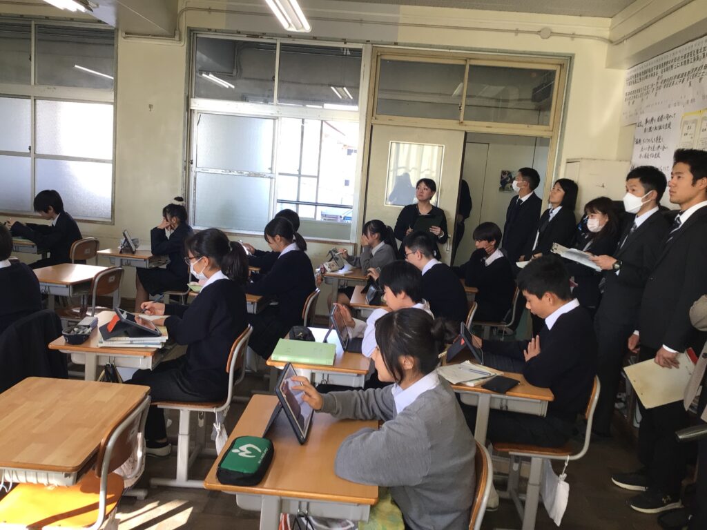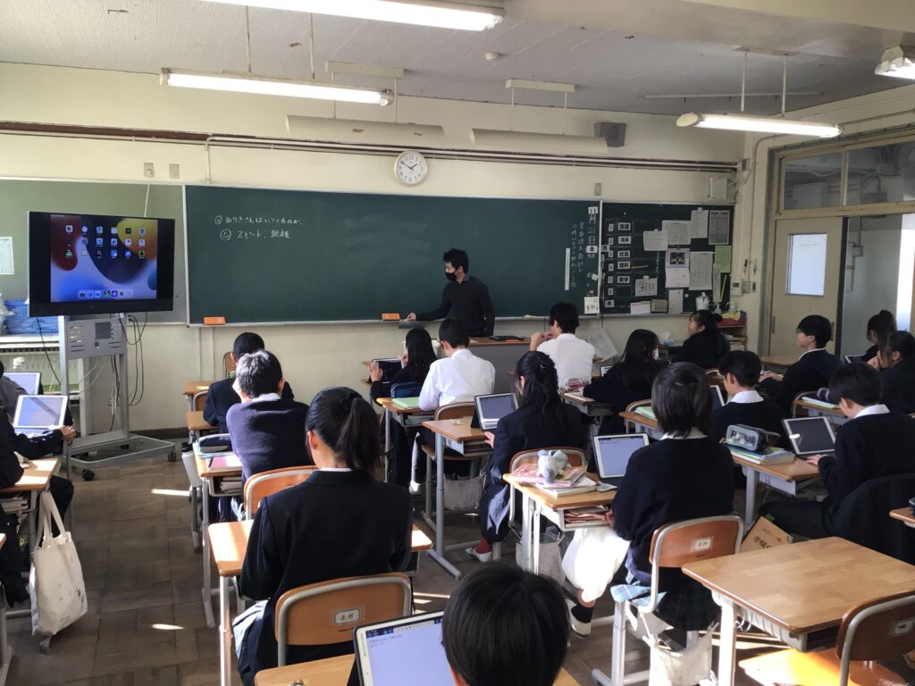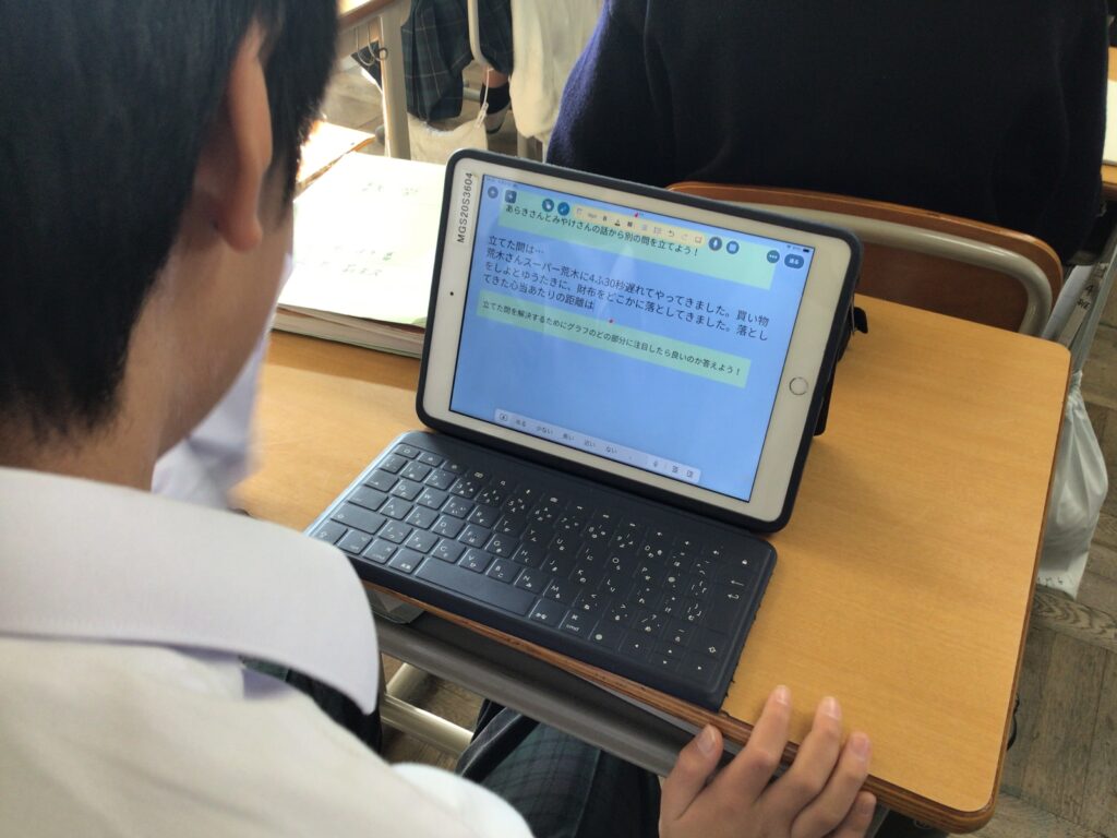 学校日誌1年の数学科では、比例反比例の最後の授業で、 映像資料から問いを立てて問題を解決する課題を行いました。 課題解決のために ①映像資料の情報を読み取って問いを立てる ②未完成のグラフを作成する ③②を使って問題解決するためにはどこに注目したら良いのか説明する 子どもたちは、具体的な事象と数学的な表現を行き来しながら、 大切な点や注意点に気づくことができていました。 授業の最後には、このグラフを使って新たな問いを作成することにも挑戦しました。