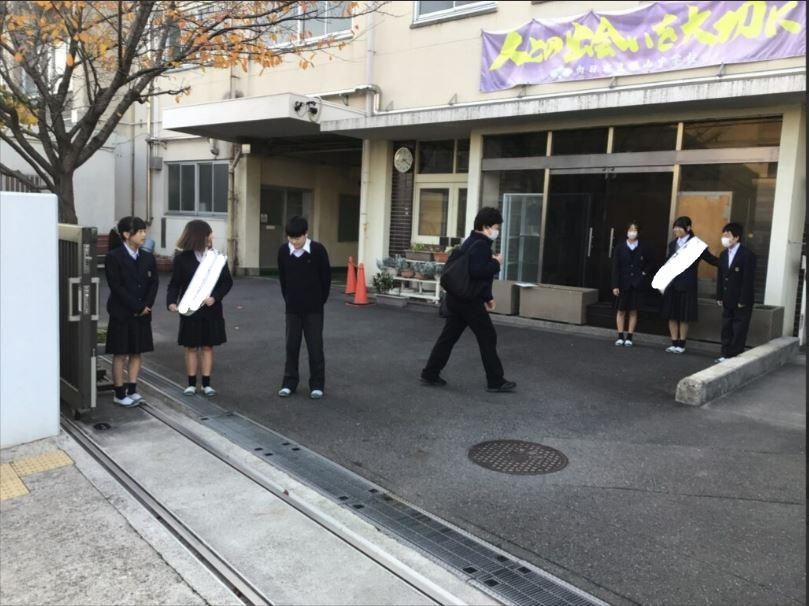 期末テストが終わって、12月2日から5日間にかけて 生徒会本部役員に立候補した人たちによる、朝のあいさつ運動が始まりました。 立候補者だけでなく、応援弁士も一緒に朝のあいさつ運動に参加して 登校するみなさんの一人一人に元気よくあいさつしていました。 5日の本部役員選挙に向けて頑張っています。