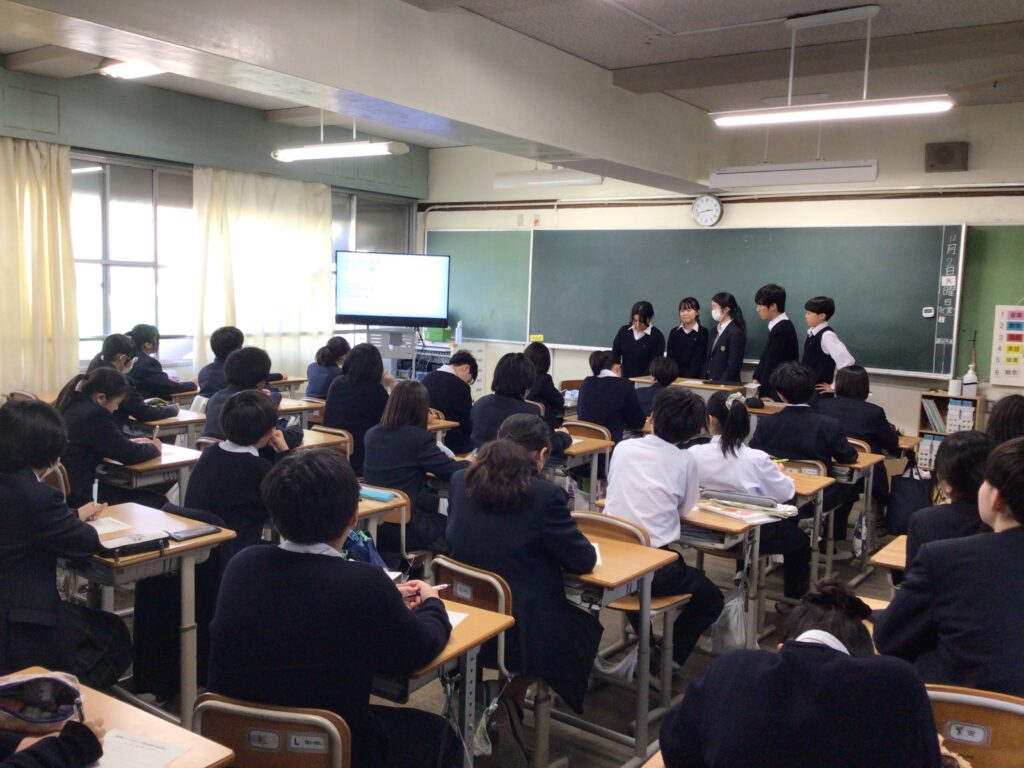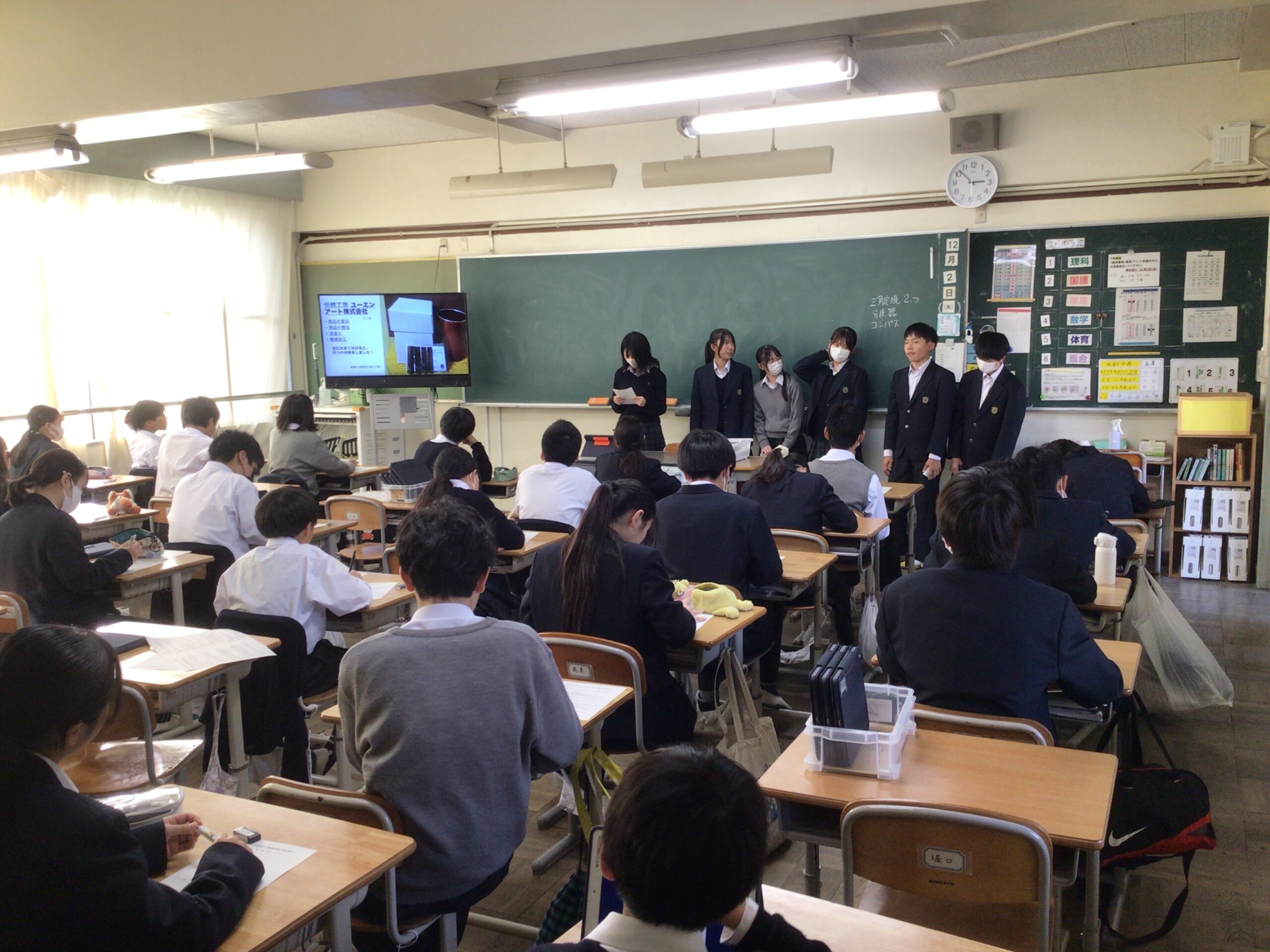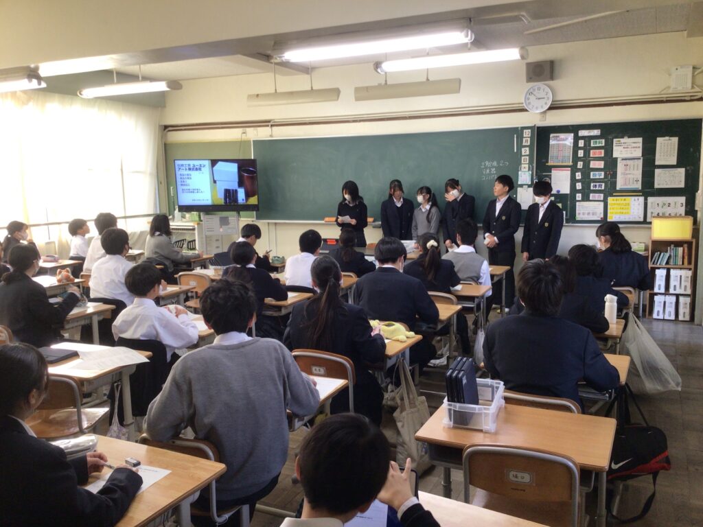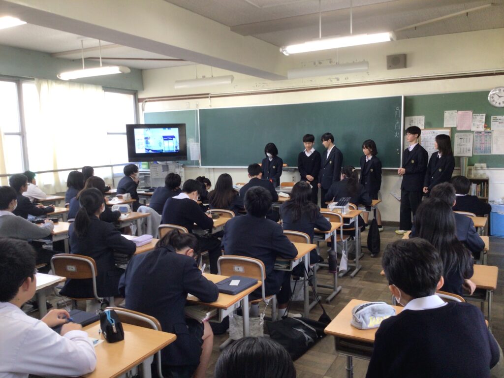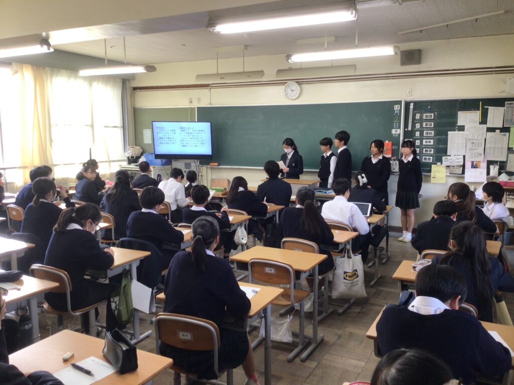 学校日誌1年では、総合的な学習の時間を使って2年から職場体験活動のまとめを聞きました。 来年度の活動を控える1年生にとって、2年生の具体的な体験談は「自分事」として 学習に向かうための大きな動機となります。 また、職場体験活動を終えた2年にとっては、自らの経験を振り返り、 これから体験する他者に伝えることで、職場体験活動での学びを定着させるだけでなく、 将来を考えるきっかけにもなりました。