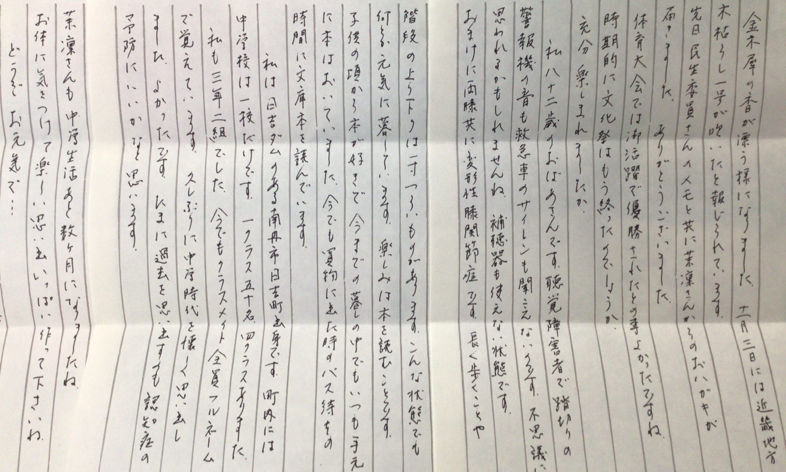学校日誌3年の国語の授業で作成したきずな便りは、 民生委員さんを通じて地域の高齢者の方々に届けられました。 その返事が3年生のみなさんのもとにたくさん届きました。 学校行事や受験に向けて頑張ってくださいと 地域の高齢者の方々からエールをいただきました。 心温まるお返事、ありがとうございました。