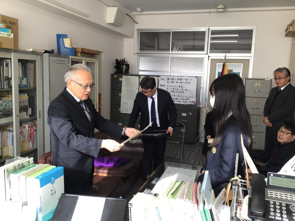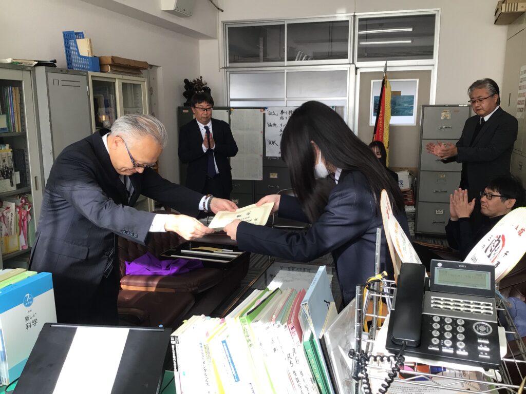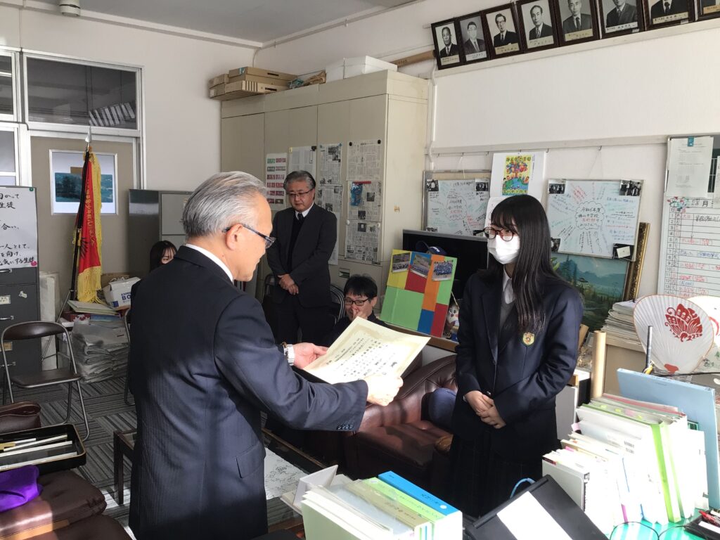 「税の作文」の表彰式 学校日誌 Twitter Facebook はてブ Pocket LINE コピー 2026.01.02 12月18日に、右京税務署長が本校を来校され、 改めて本校の生徒2名に表彰を行っていただきました。 本校の生徒が書いた作文が、京都府においても大変話題となったことを、 税務署長から紹介していただきました。おめでとうございます。 Post Views: 9
