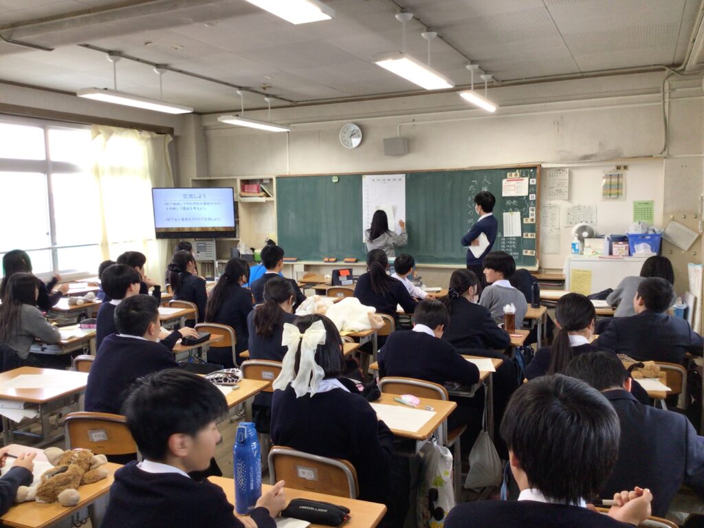 14日に、全学年で人権学習を保護者参観のもと行いました。 向日市の小中学校では、新しい時代にたくましく生き、 ふるさと向日市から世界に羽ばたき、 社会と地域の発展に貢献できる人間が育つ地域づくりを目指し、 人権尊重を基盤として、時代の進展に対応した教育を進めるために 人権学習を実施しています。 1年では「ネットモラル」、2年では「差別の構造」、 3年では「就職差別」を行いました。 それぞれの人権問題に対し、一人一人が持っている人権感覚を交流しながら グループで話し合っていました。