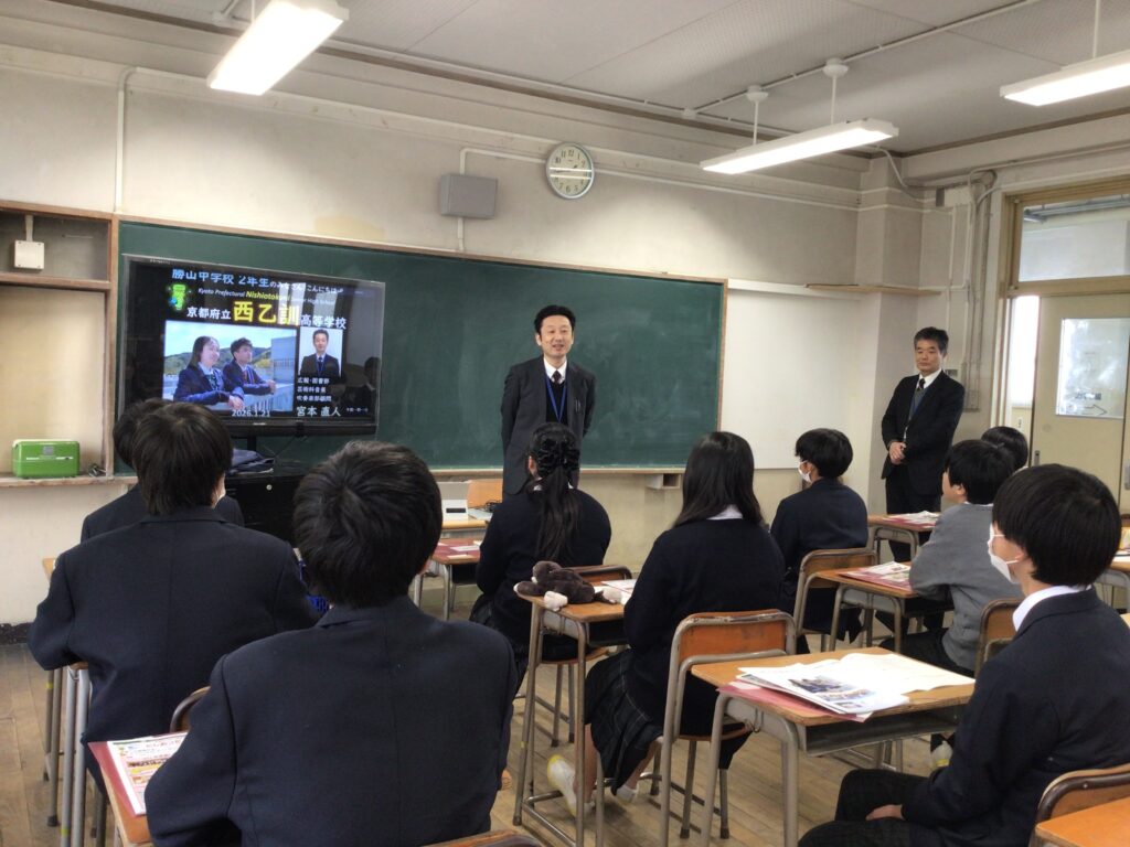 2年の総合的な学習の時間では、公立高校の先生方をお招きして 公立高校説明会を実施しました。2年では、2学期に職場体験活動を実施して、 「学ぶこと」と「働くこと」について密接な関連性に気づいた上での進路学習です。 2年のみなさんが、1年後どのように進路選択をして、進路実現をしていくのかを 考えるきっかけとなった説明会でした。 本校に来校して説明したいただいた公立高校の先生方に感謝申し上げます。 乙訓高校、桂高校、向陽高校、嵯峨野高校 西乙訓高校、山城高校、洛西高校(順不同)