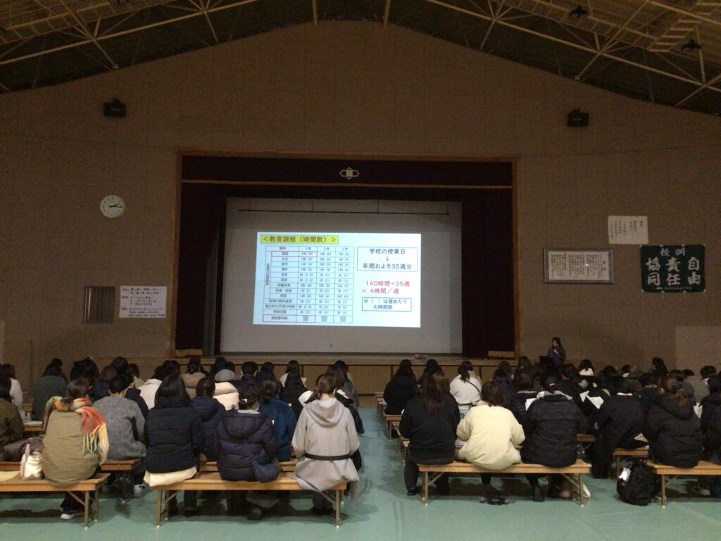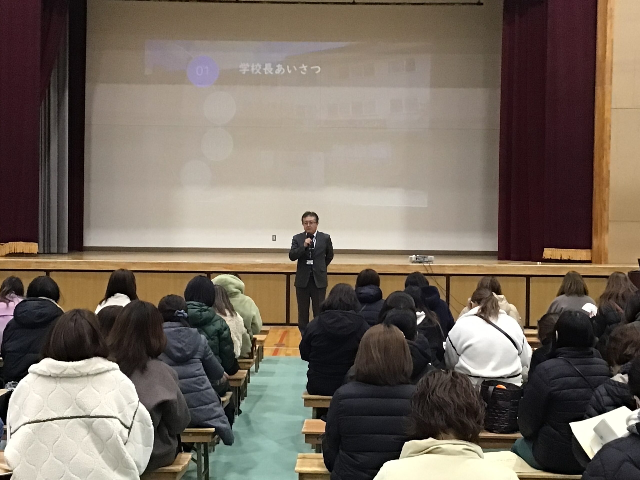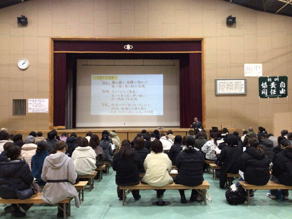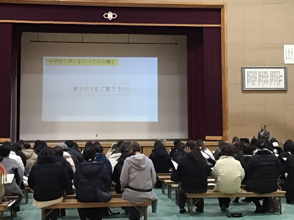 1月28日に、来春入学予定の小学6年生の保護者の皆様をお迎えし、 「令和8年度 新入生保護者説明会」を開催いたしました。 お忙しい中、また寒い中ご参加いただき、誠にありがとうございました。 全体会では、学校長より、勝山中学校が目指す生徒像や学校のビジョンについて、 続いて本校教員より中学校の「教育課程」や「学校のルール」について説明を行いました。 全体会の終了後は、PTA主催による「校長先生を囲む会」が開かれました。 ここではリアルでざっくばらんなご質問を多数いただき 和やかな雰囲気で行われました。 桜の咲く4月、新入生の皆さんが元気に勝山中学校の門を くぐってくれることを、心よりお待ちしております。