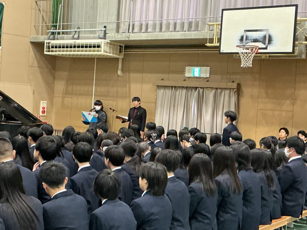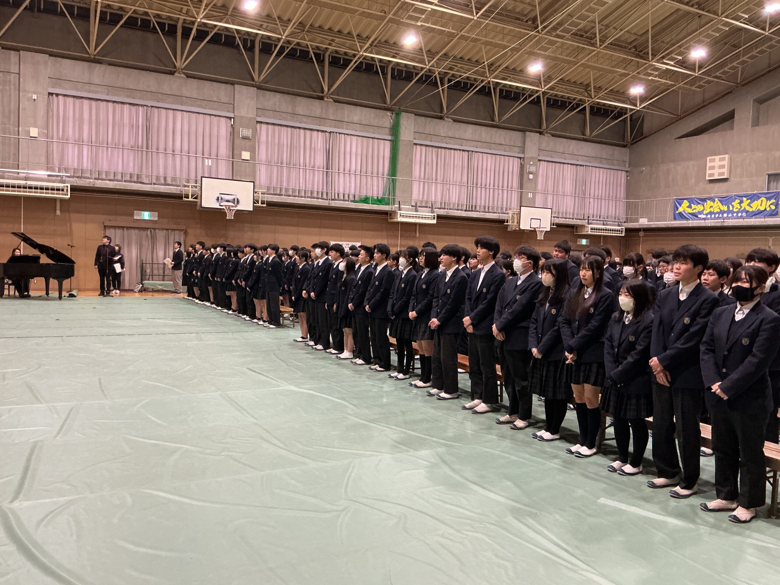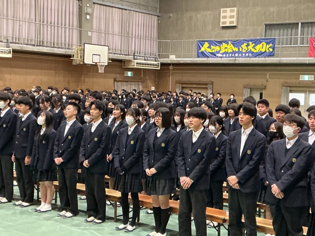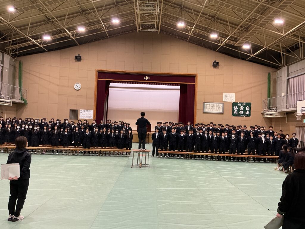 卒業式を前日に控えた3月12日、体育館にて卒業式予行が実施されました。 教頭先生の司会進行のもと、当日参列する2年生も一緒に参加し、 本番さながらの緊張感の中で予行が進められました。 卒業証書授与や来賓祝辞でのマナー、そして送辞・答辞の動きの確認など、 一つひとつの動作に対して細かいところまでチェックが行われました。 3年生の堂々とした姿、そしてそれを見つめる2年生の真剣な眼差しから、 勝山中学校の伝統が引き継がれていく頼もしさを感じました。 本番に向けての準備は整いました。 3年生の皆さん、中学校生活3年間の集大成として、 最高の卒業式を作り上げてください!