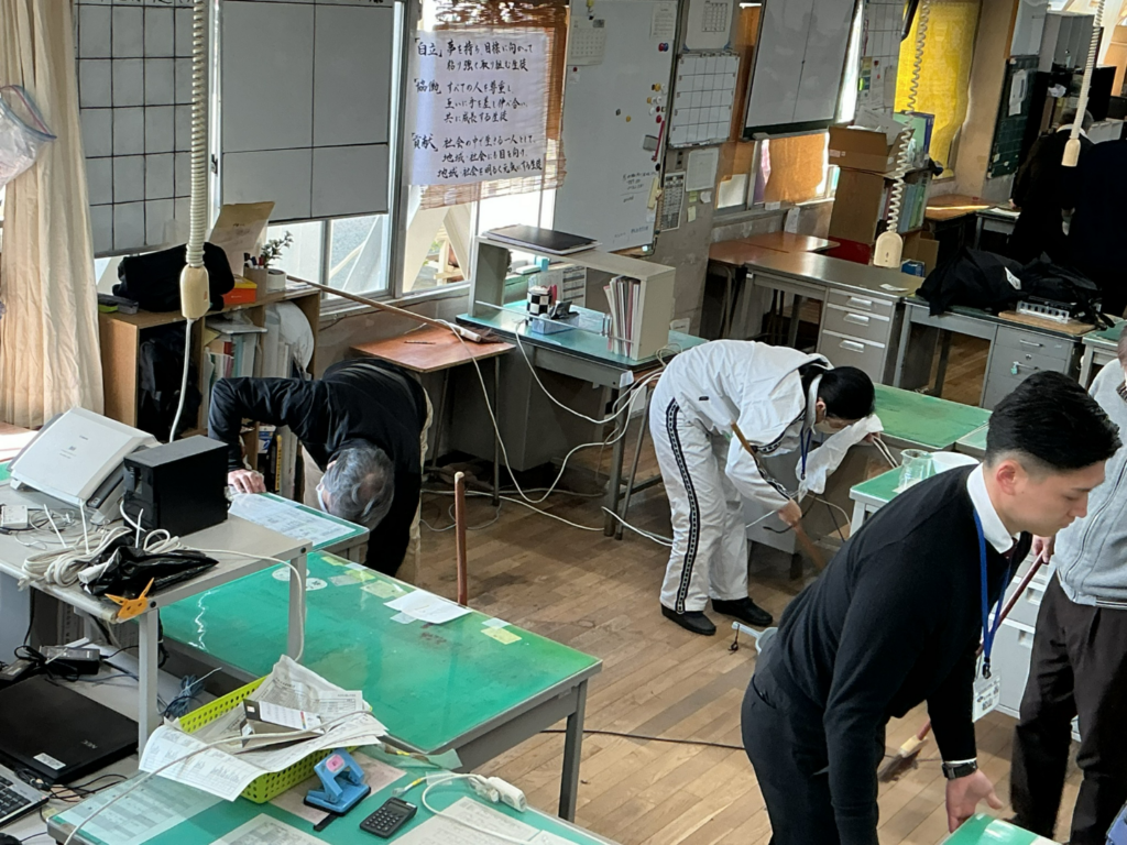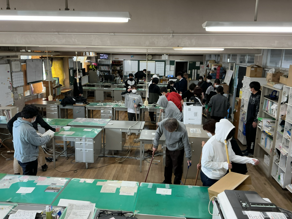 3日は、生徒たちを最高にきれいな環境で迎えるため、 全職員による大掃除を行いました。 学校長から環境整備担当へ全権委任され、教職員のチームワークで一気に行いました。 作業中は、笑顔と活気があふれ、先生方の絆が一層深まった時間となりました。 生まれ変わった職員室は、とてもきれいになり、新しい年度に向けて準備万端です。 生徒の皆さんを迎え、共に新しい「一歩」を踏み出す日が、本当に楽しみです!