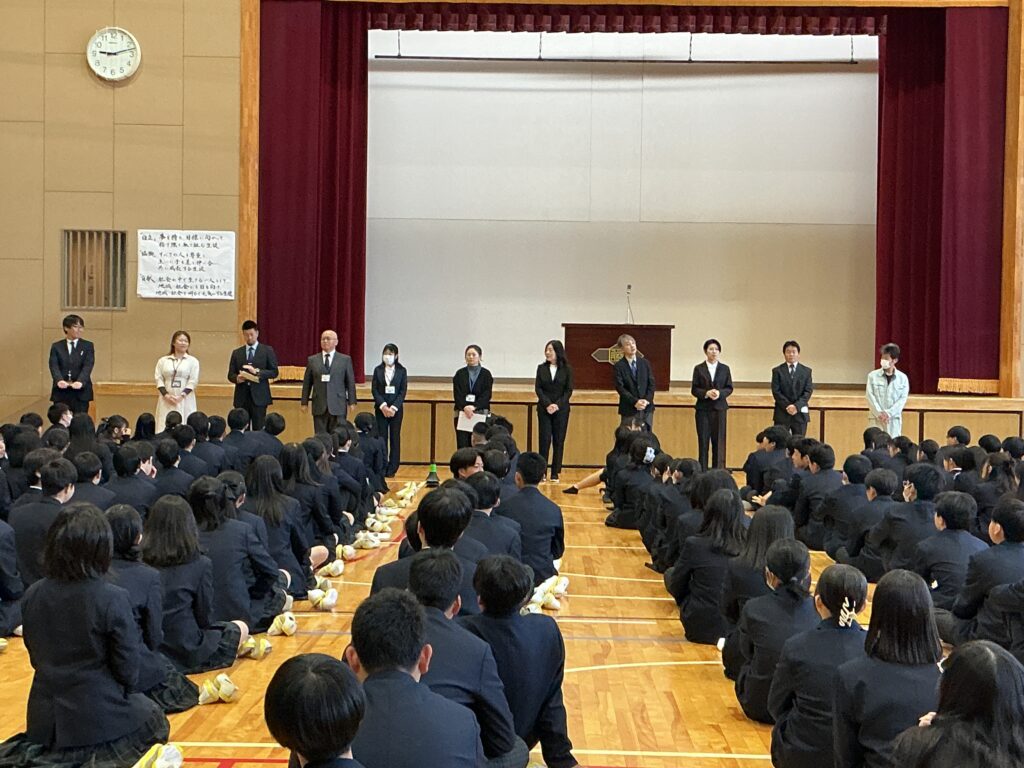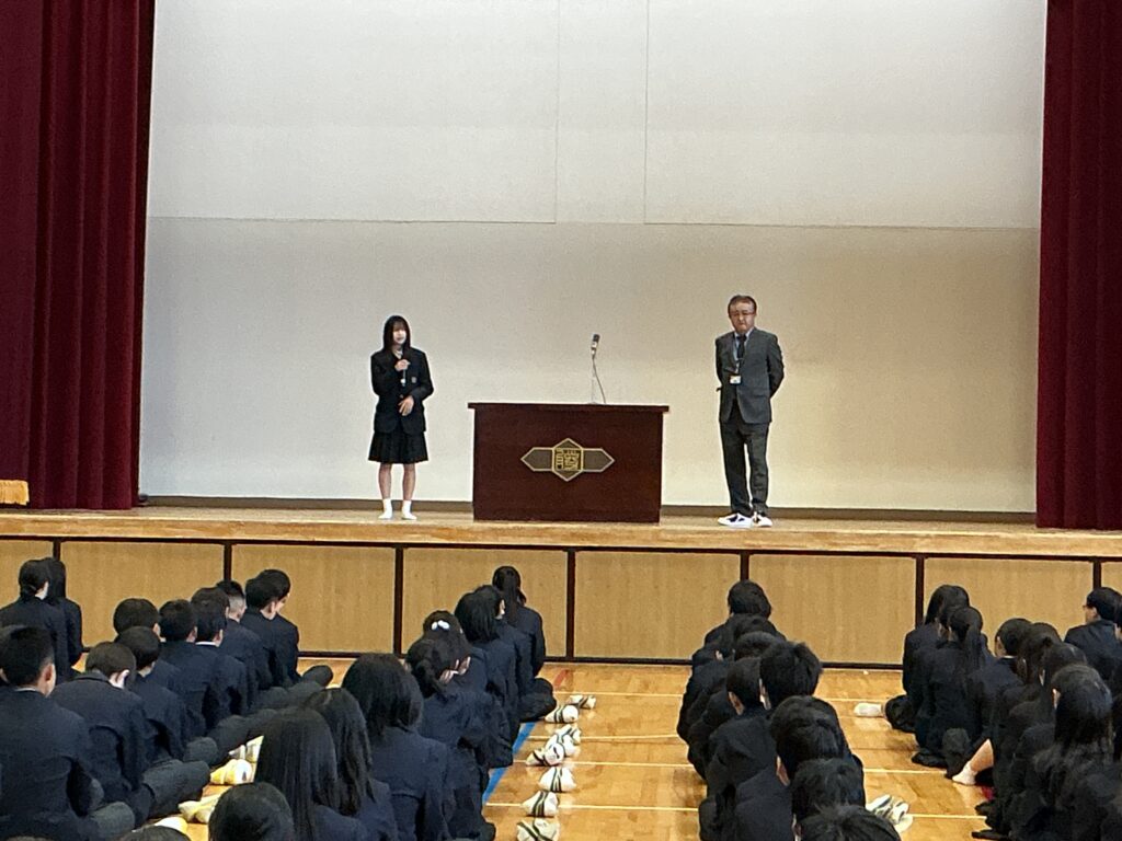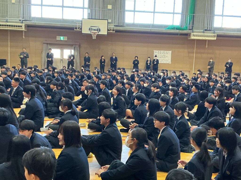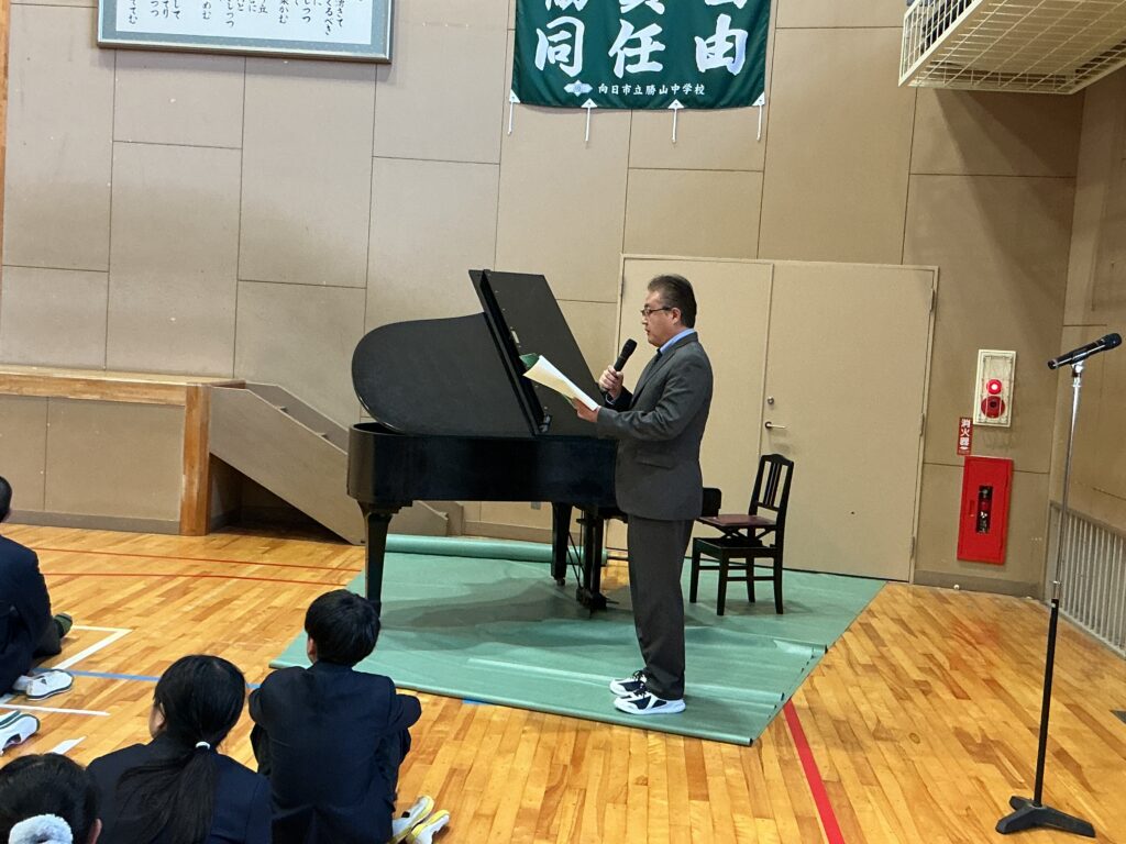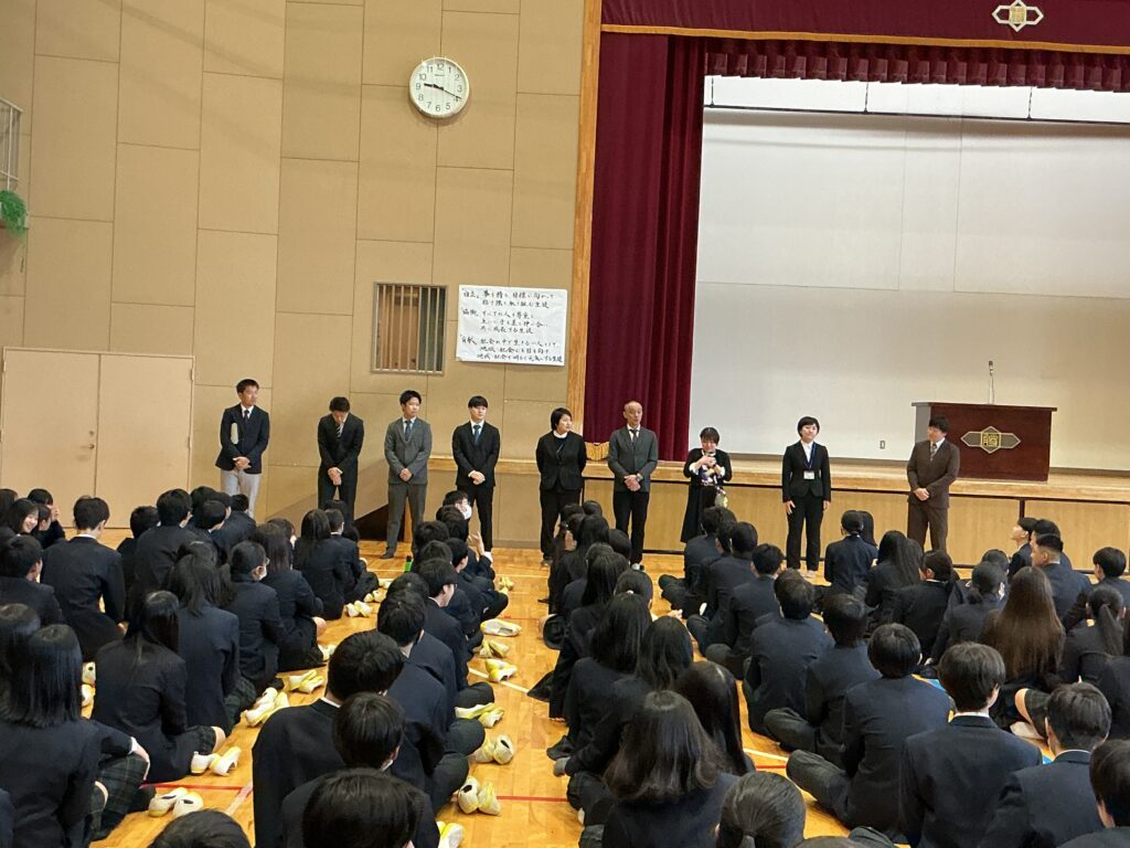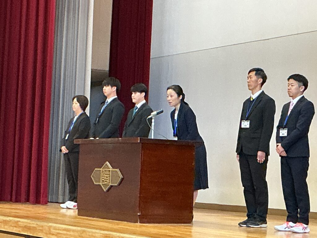 今日は4月8日、着任式・始業式を行いました。 まずは、着任式、新たに8人の先生方を温かい雰囲気で迎えました。 次に、始業式、校長先生から各学年へのエールが送られました。 「3年は、いよいよ最高学年となります。 みなさんが勝山中学校の”顔”として“代表”として、目標を持って粘り強く、 何事も前向きに頑張って、進路にも向き合ってください。」 「2年は、いよいよ先輩になります。新入生が安心して過ごせるよう、 小さな変化を気づき、その時にはさりげない優しさで そっとフォローできるみなさんであってください。」 そして、生徒会会長が壇上にあがって校長先生からの直接インタビュー。 「今の勝山中のいいところ」を生徒会会長から紹介してもらいました。 生徒会会長からは、「やると決めたらとことんやりきるところ」と 良さを発表してもらい、勝中生から承認の拍手が起こっていました。 その後、最も盛り上がりを見せたのが職員紹介と担任発表です。 発表のたびに、体育館には驚きの声と温かい歓声が入り混じり、 新しい出会いを楽しむ勝中生のエネルギーを感じる瞬間となりました。 最後に、生徒指導の先生から「新しい勝山中を共に創ろう」とありました。