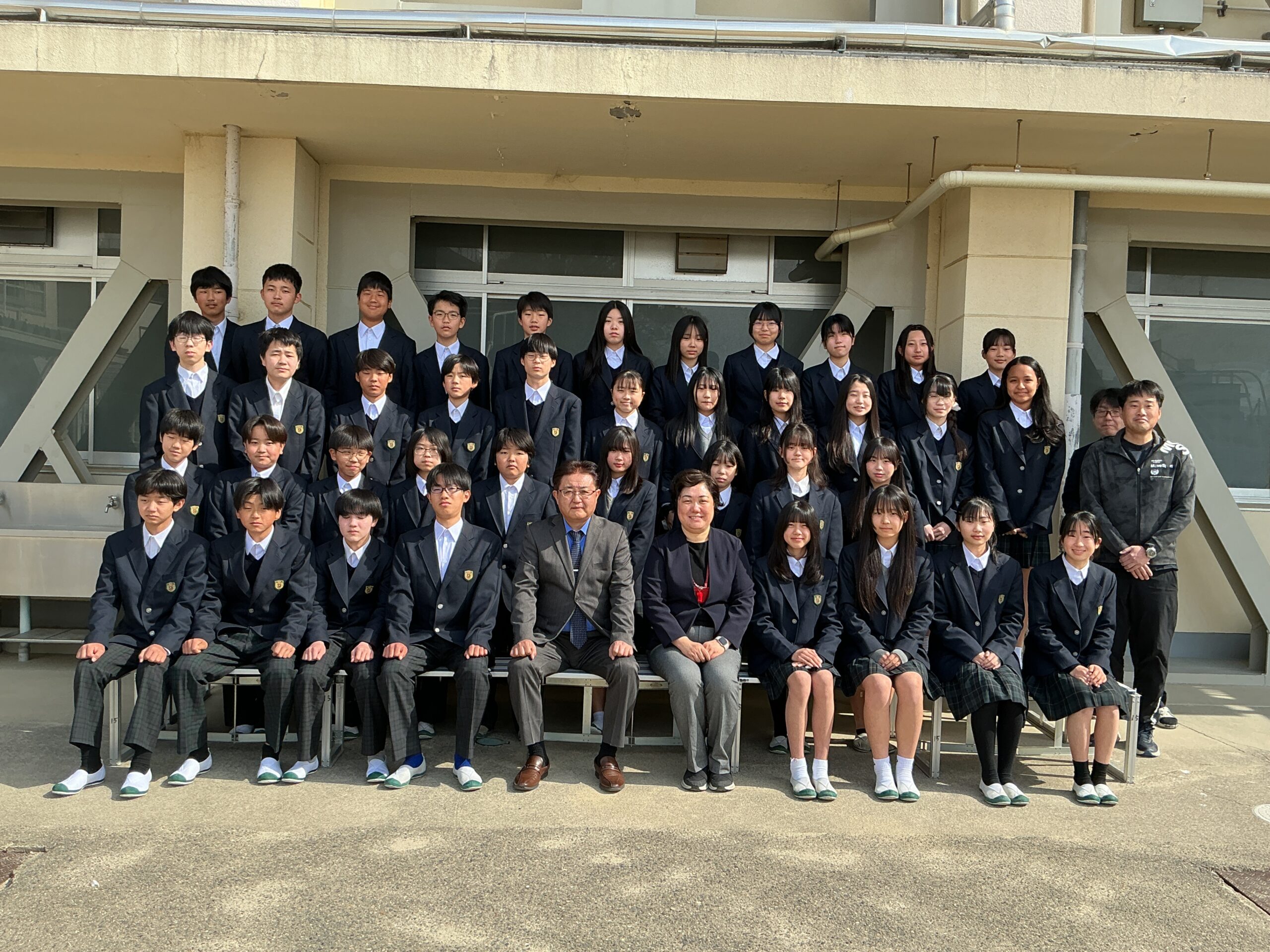 本日も春らしい暖かな日差しに恵まれ、2・3年生のクラス写真撮影が行われました。 真新しい気持ちで迎えた新学期。新しいクラスの仲間、 そして担任の先生と共にひな壇に並びました。 最初は少し緊張した面持ちの生徒もいましたが、 カメラマンさんや先生たちの明るい声かけに、自然と笑顔がこぼれていました。 撮影の合間や順番を待つ間には、新しい仲間と楽しそうに言葉を交わす様子も見られ、 これから始まる1年間への期待やワクワク感がこちらまで伝わってくるようでした。 先輩として勝山中学校を引っ張っていく3年生、 そして中堅学年として新入生を支える2年生。 それぞれの成長が今からとても楽しみです。