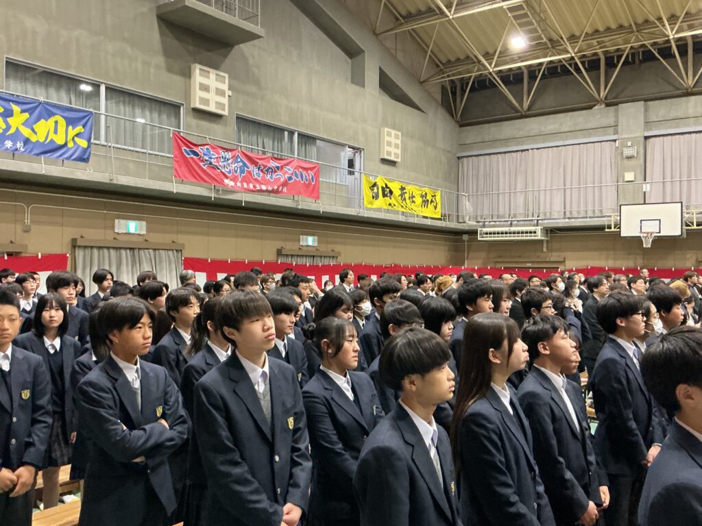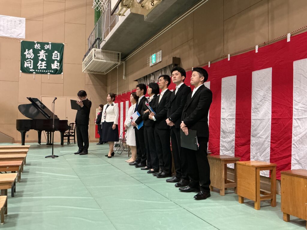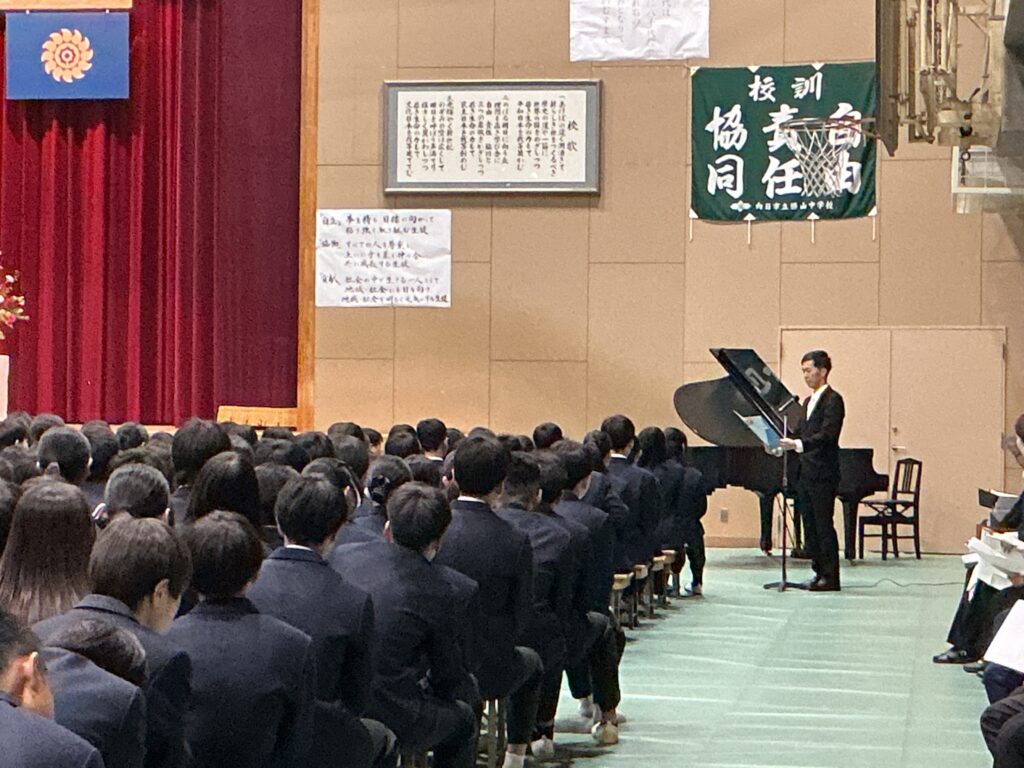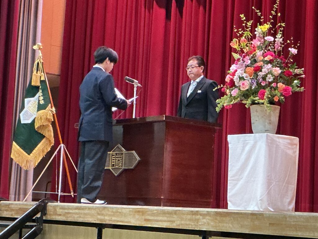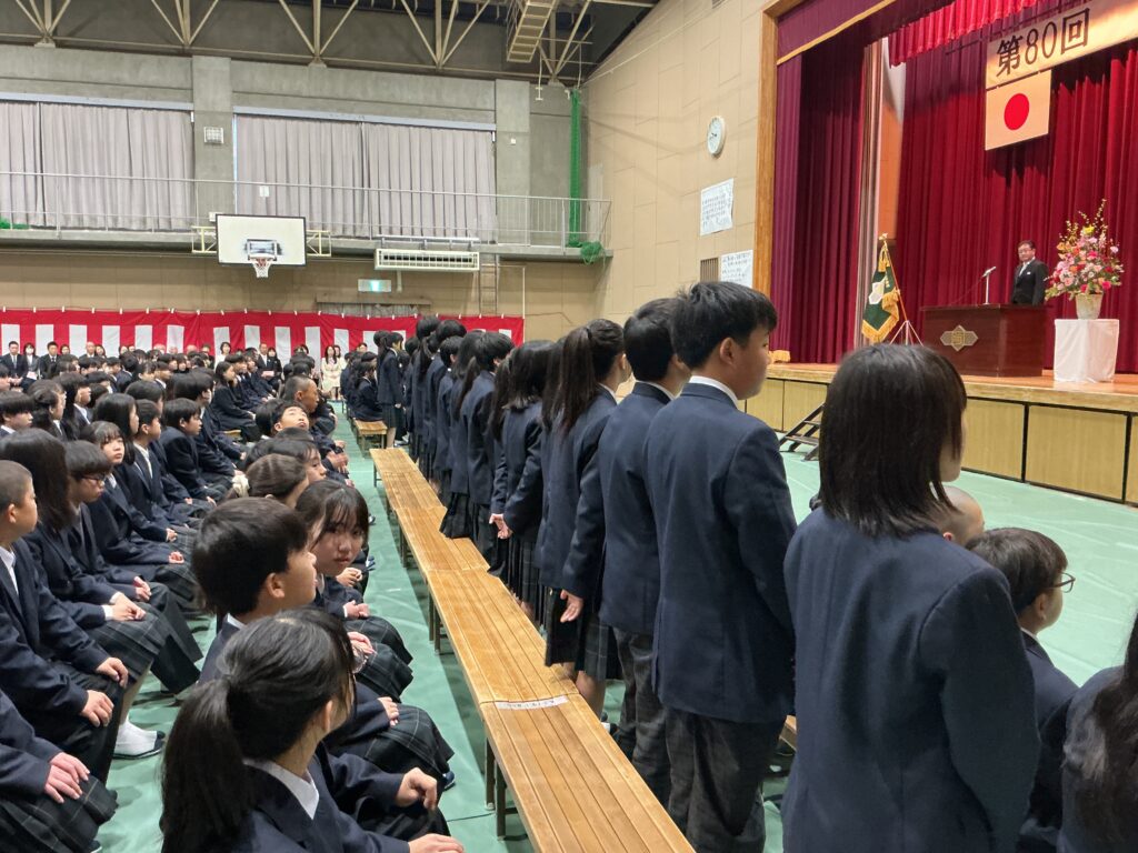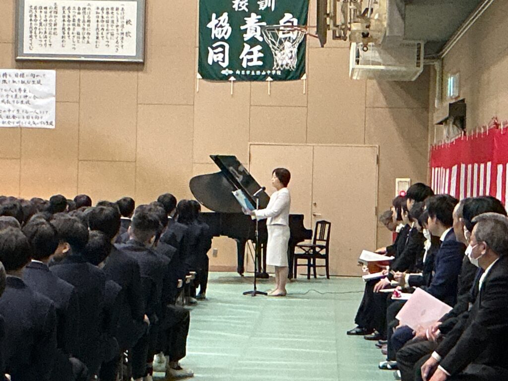 4月10日、恵みの春雨が木々の緑を鮮やかに濡らす中、 令和8年度の入学式を挙行いたしました。 真新しい制服に身を包み、新しく勝山中学校の門を叩いた195名の新入生の皆さん、 ご入学本当におめでとうございます。 校長先生からの式辞では、本校で目指す生徒像の紹介がありました。 とりわけ【協働】について、みなさんが答えのない課題に立ち向かっていくときには、 たとえ困難な状況にあっても、仲間と協働しながら課題解決に向かっていくことの 大切さを教えていただきました。 また、祝辞をいただいた向日市教育委員会 教育長職務代理者の松本克彦様、 PTA会長からも、新入生へ向けたお言葉を頂戴し、新入生たちは背筋を伸ばし、 真剣な眼差しで受け止めていました。 また、生徒会による「歓迎の言葉」や新入生代表の「誓いの言葉」からは、 これから始まる中学校生活への強い決意と希望が力強く語られました。 これで、全学年が揃い、新生・勝山中学校が本格的に動き出します。 教職員一同、生徒一人ひとりの個性を大切にしながら、 子どもたちの伴走者として共に歩んでまいります。 保護者の皆様、地域の皆様、195名の新入生を加えた本校の教育活動に、 今年度も温かいご支援とご協力をよろしくお願いいたします。