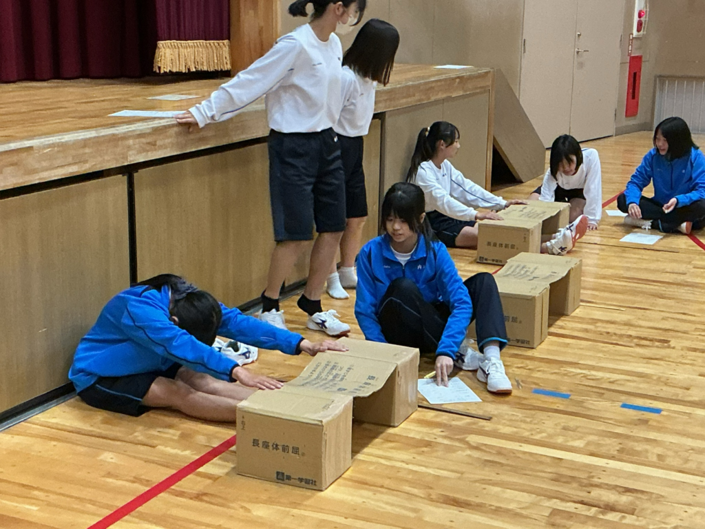 13日に、2年生と3年生を対象に「二測定(身長・体重・視力)」 および「新体力テスト」を実施しました。 体育館では新体力テスト(握力、上体起こし、長座体前屈、反復横跳び)を行いました。 「少しでも記録を伸ばそう!」と真剣な表情で限界まで体を伸ばしたり、 機敏にステップを踏んだりする姿はとても頼もしかったです。 また、友達同士で「がんばれ!」「すごい!」と声を掛け合いながら、 楽しみながら体を動かす勝中生の活気あふれる姿が印象的でした。