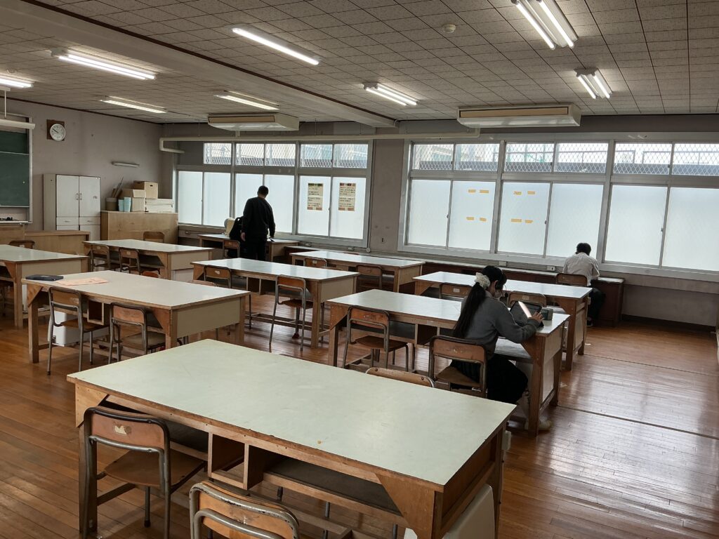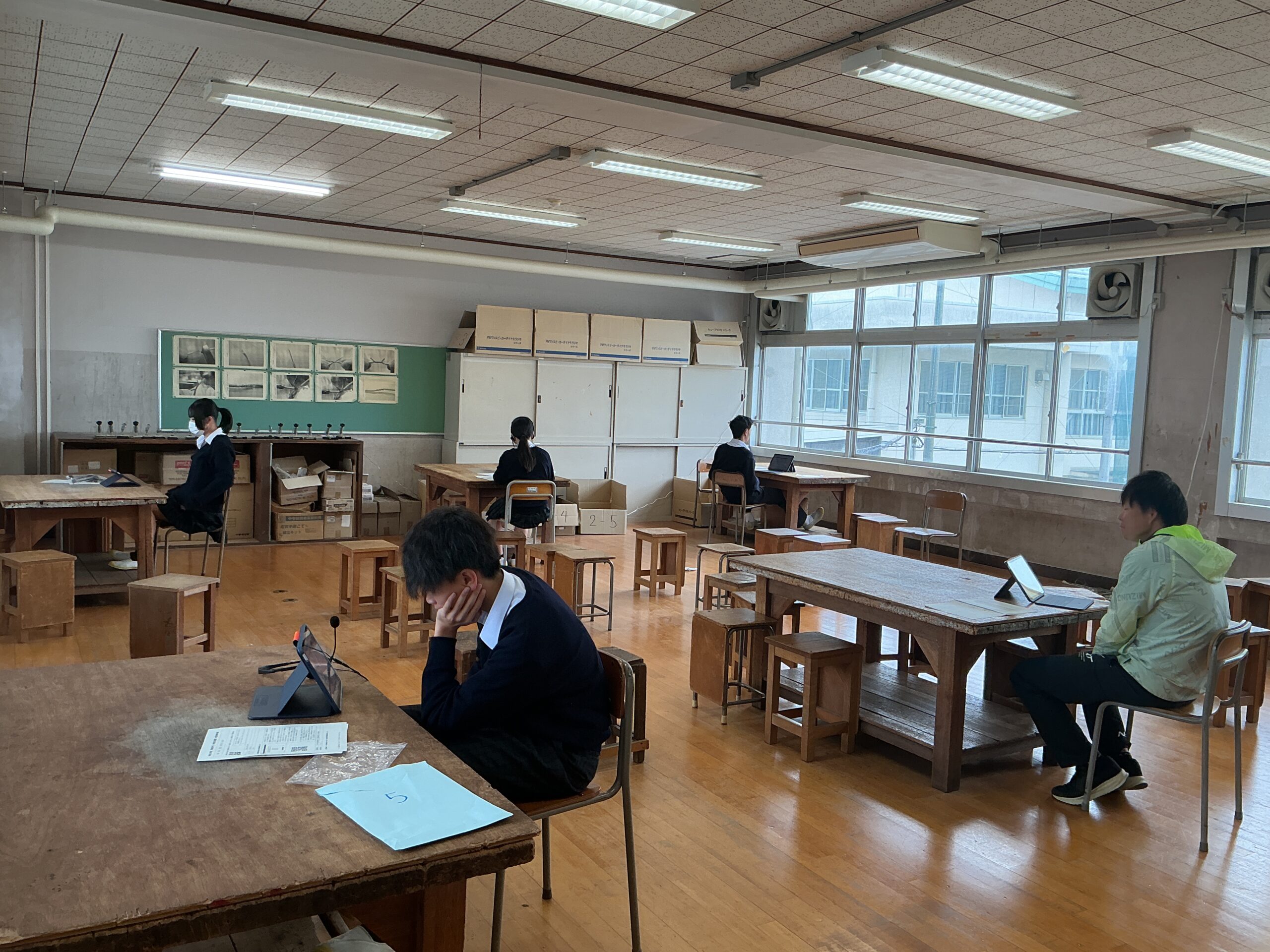 24日は、全国学力学習状況調査の【英語・話すこと】が実施されました。 今回の「話すこと」調査は、生徒がタブレット端末とヘッドセットを使用し、 音声を直接録音する形式で行われます。 隣の生徒の声が入らないよう、また集中して取り組めるよう、 特別教室に分散して調査を行い、公正・公平な調査環境を担保することができました。 教室をのぞくと、そこには静かな緊張感がありました。
