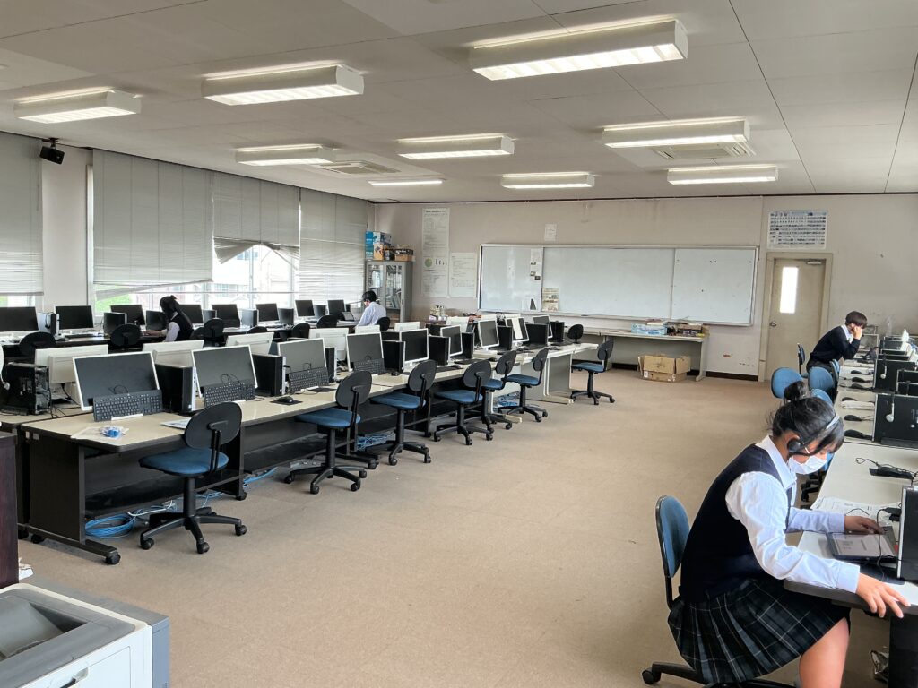 生徒たちはヘッドセットから流れてくる英文をじっくりと聴き取り、 「どう答えればいいか」と頭の中で思考を巡らせていました。 なお、当日は多数の端末が同時に接続しても問題なく通信が行われるかを確認するため、 向日市教育委員会の方々にも本校へお越しいただき、手厚いサポートをしていただき、 大きなトラブルなく無事に調査を終えることができました。 この場をお借りして厚く御礼申し上げます。
