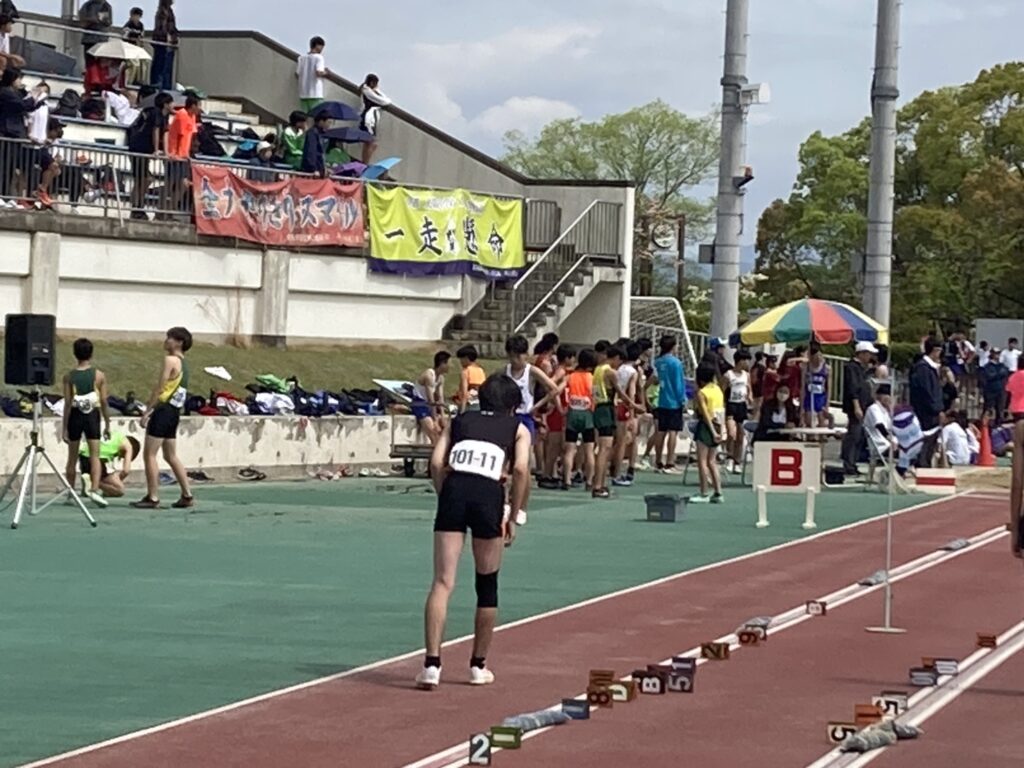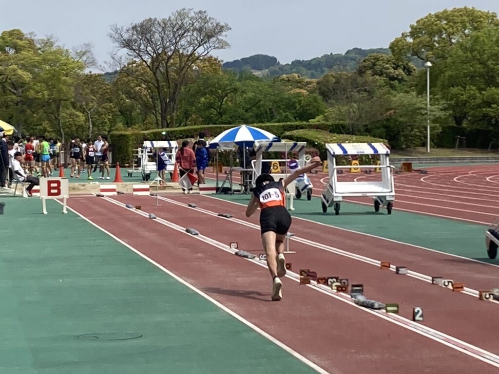 4月25日(土)、太陽が丘にて、春季乙訓陸上競技大会が開催され、 本校の陸上競技部が多数の種目にエントリーしました。 どの種目においても、勝中生たちは日々の厳しい練習で培った力を出し切ろうと、 全力で競技に挑んでいました。 今回の大会で自己ベストを更新して喜びを爆発させた人もいれば、 悔しい思いをして次への課題を見つけた人もいるでしょう。 そのすべての経験が、次の大会への大きな原動力になります。 陸上競技部のみなさん、本当にお疲れ様でした!