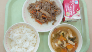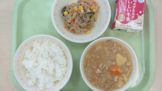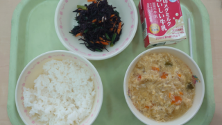 ☆ごはん☆大根のそぼろ煮☆しらたきのツルツル炒め☆牛乳