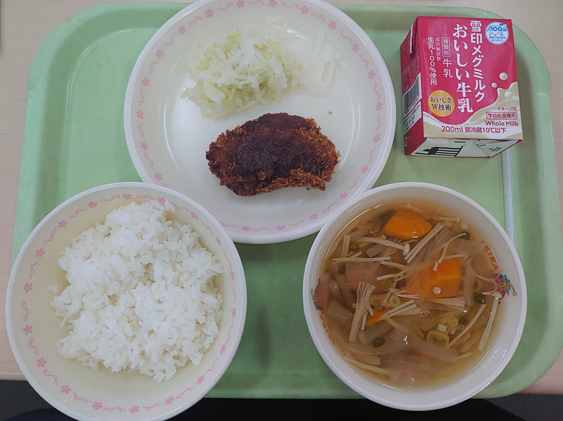9月26日の給食 今日の給食 2025.10.01 ☆ごはん☆みそかつ☆添えキャベツ☆玉ねぎとえのきのすまし汁☆牛乳 「みそかつ」は愛知県の名古屋市で生まれた料理です。もともと、とんかつにみそをかけて食べる習慣はありませんでしたが、ある時、間違ってとんかつをみそ鍋に入れてしまったところ、これが大変おいしかったため、その食べ方が広まったといわれています。つまり、「失敗から生まれた料理」です。このように新しい味の発見があると食事が楽しくなりますね。 Post Views: 19