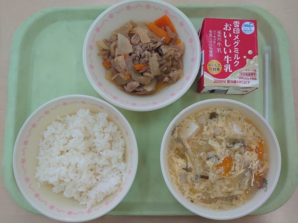 9月30日の給食 今日の給食 2025.10.02 ☆ごはん☆豚肉の生姜炒め☆かきたま汁☆牛乳 かきたま汁をきれいに仕上げるコツは、2つあります。1つ目は、片栗粉でだし汁にとろみをつけておくことで卵が沈みにくくなり、ふんわりと浮かび上がります。2つ目は、卵の入れ方です。だし汁の温度が下がらないように、沸騰したところに卵を少しずつ回し入れ、入れた後はゆっくりとかき混ぜることで卵がふんわりと仕上がります。 Post Views: 21
