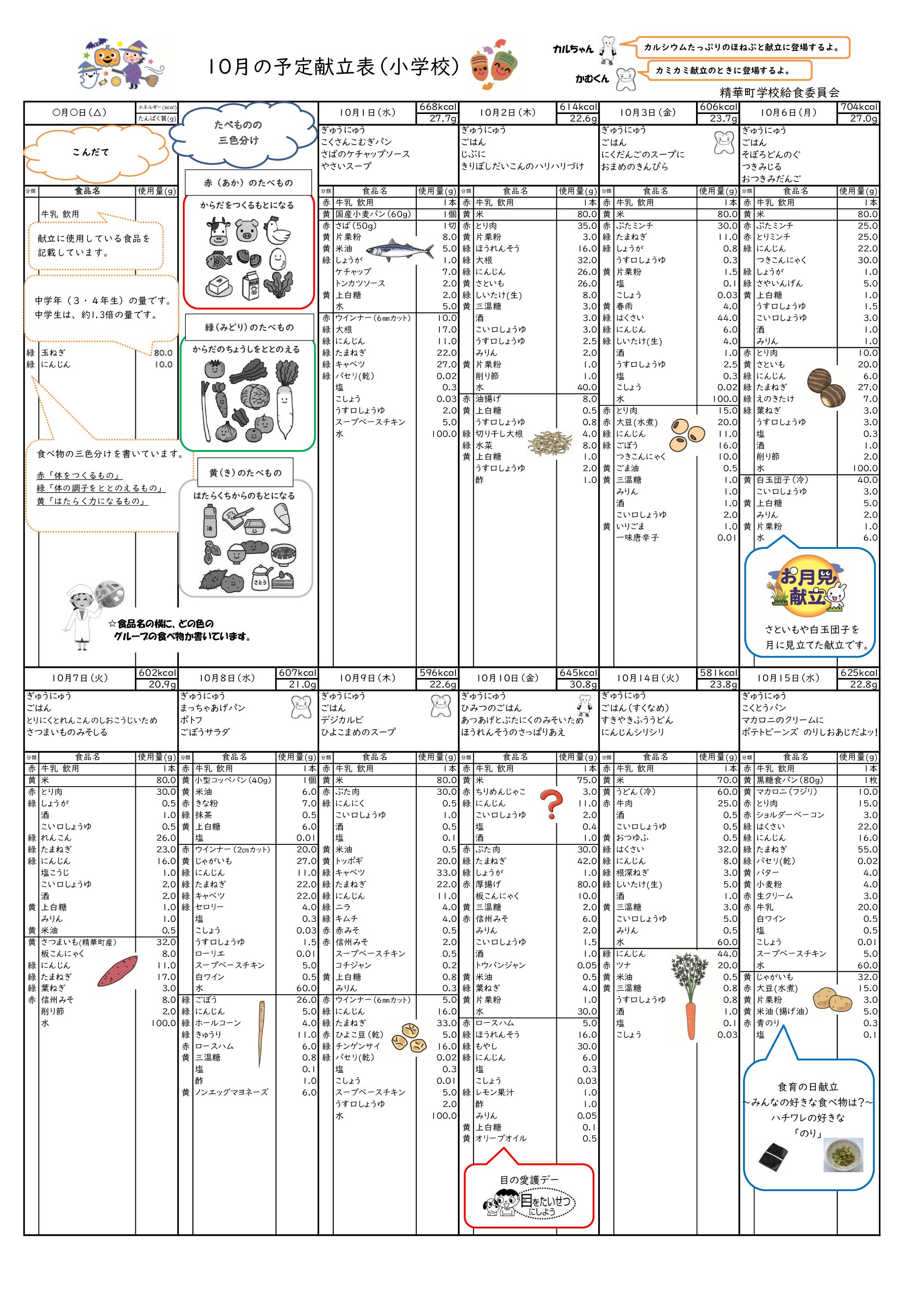 10月配布献立表 小学校