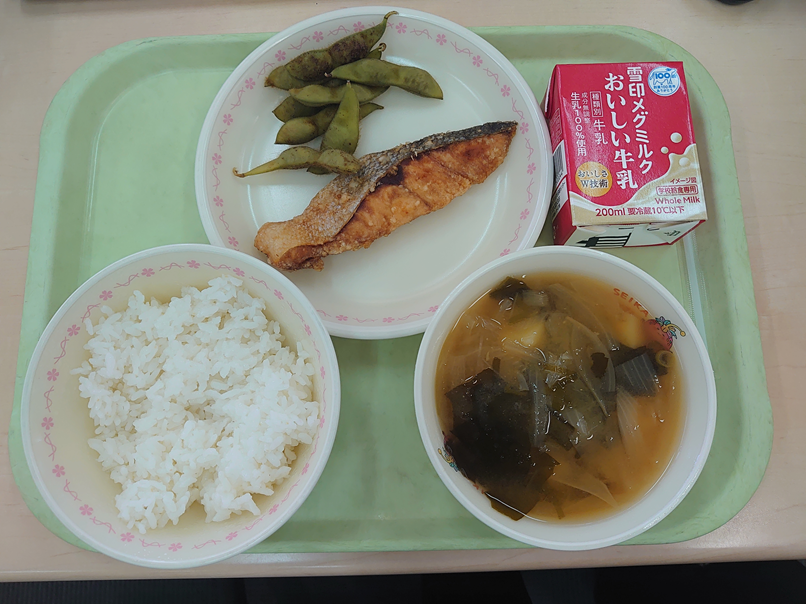 10月23日の給食 今日の給食 2025.10.24 ☆ごはん☆鮭の甘酢がけ☆黒大豆枝豆☆じゃがいものみそ汁☆牛乳 今日の枝豆は精華町でとれた黒大豆枝豆です。枝豆は実が若い大豆を収穫したものです。大豆はたんぱく質が多く含まれています。さらに枝豆にはビタミンCやビタミンAも多いのが特徴です。枝豆は野菜に分類されますが、豆と野菜の両方の栄養を持った食材です。 Post Views: 13