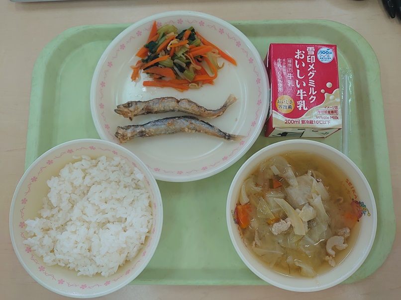 10月28日の給食 今日の給食 2025.10.29 ☆ごはん☆ししゃものからあげ☆小松菜のお浸し☆具だくさんみそ汁☆牛乳 具だくさんみそ汁には、豚肉、大根、たまねぎ、にんじん、こんにゃく、ねぎが入っています。給食に使われるいろいろな食べ物は、その働きによって3つの仲間に分けられます。1つ目は「体を作る」、2つ目は「体を動かす」、3つ目は「体を守る」働きです。給食には、この3つの仲間の食べ物がバランスよく入っています。 Post Views: 43