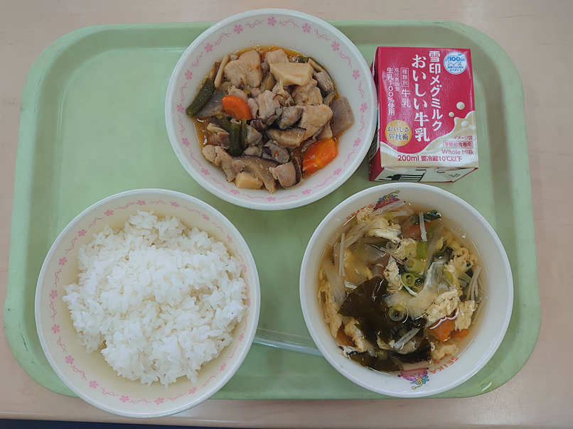 10月30日の給食 今日の給食 2025.11.04 ☆ごはん☆プリプリ中華炒め☆わかたまスープ☆牛乳 わかめは、「海外の野菜」ともいわれていて、野菜と同じく体の調子を整える働きがあります。わかめのヌルヌルは、水に溶ける食物繊維で、腸の中でゼリー状になり、体の中の余分なものを外へ出す働きがあります。今日はスープにしているので温まりながら、病気の予防をしましょう。 Post Views: 55
