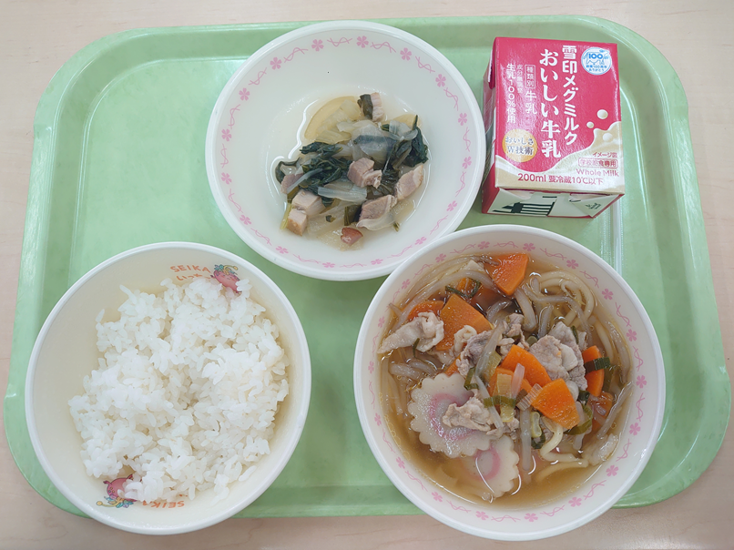 11月4日の給食 今日の給食 2025.11.04 ☆ごはん☆チンゲンサイのベーコン炒め☆しょうゆラーメン☆牛乳 ラーメンはもともと中国から伝わった料理で、日本ではしょうゆ・みそ・塩などいろいろな味があります。ラーメンに欠かせない、つるつるの麺と一緒に、おいしいしょうゆ風味のスープも残さず飲んで、体の中から温まりました。 Post Views: 5