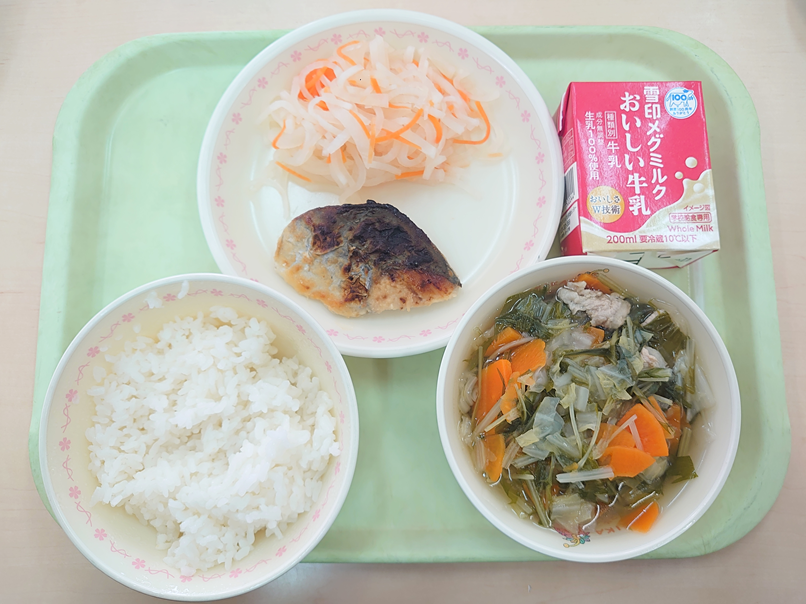 11月11日の給食 今日の給食 2025.11.11 ☆ごはん☆さわらの西京焼き☆大根の酢の物☆水菜のハリハリ汁☆牛乳 さわらは漢字で、魚へんに春と書きます。そのため、春のイメージが強いですが、春にたくさんとれるというだけで、実は初夏と冬が旬です。特に冬のさわらは、産卵前なので脂がたくさんのっていて、甘みもあっておいしいです。サバの仲間ですが、クセがなく、身も柔らかい高級魚です。今日は西京焼きしました。 Post Views: 6