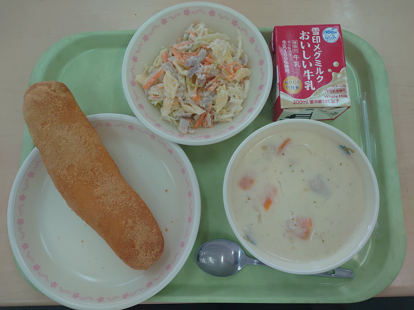 11月12日の給食 今日の給食 2025.11.12 ☆きな粉パン☆クリームシチュー☆マカロニサラダ☆牛乳 精華町内の中学3年生に好きな給食のアンケートをとりました。今月はその中で人気だった給食が順に登場します。今日は精華中学校でリクエストが多かった献立です。大人気のきなこパンに寒い季節にぴったりのシチューを合わせました。 Post Views: 14