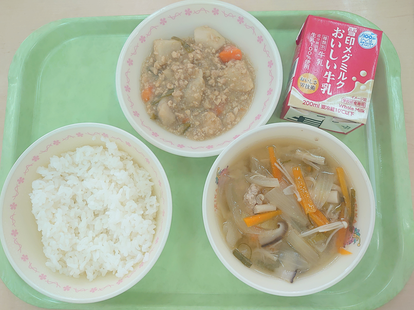 11月14日の給食 今日の給食 2025.11.18 ☆ごはん☆さといものそぼろ煮☆きのこたっぷりみそ汁☆牛乳 きのこにはカルシウムの働きを助けるビタミンDが含まれており、カルシウムと一緒に食べると体に吸収しやすくなります。丈夫な骨や歯を作るためにもカルシウムたっぷりの牛乳などと一緒に食べましょう。今日の給食にはしめじ、えのきたけ、しいたけが入っています。 Post Views: 4