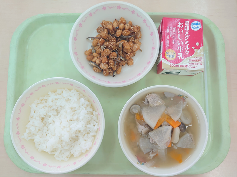 11月17日の給食 今日の給食 2025.11.21 ☆ごはん☆大豆のカリポリ揚げ☆食べる生姜ぶた汁汁☆牛乳 今日は、精華西週学校のリクエスト献立です。しょうがは、さわやかな香りとピリッとした辛みがある野菜です。日本ではすりおろしたり、きざんだり、千切りにしたりして薬味に使います。また、魚や肉料理の臭みを消すためにも使われます。今日の食べる生姜ぶた汁は、しょうがの香りがが食欲をそそります。 Post Views: 1