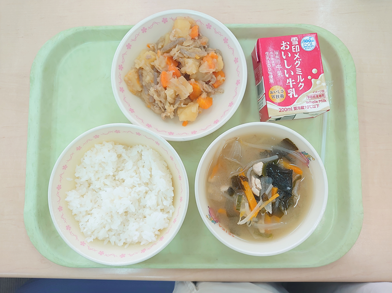 11月20日の給食 今日の給食 2025.11.21 ☆ごはん☆切干大根とじゃがいもの煮物☆とり五目みそ汁☆牛乳 切干大根は大根を細く切り、天日で干して乾燥させた保存食です。太陽の光を浴びることで、甘くなります。また、骨や歯を丈夫にするカルシウムや、貧血の予防効果のある鉄、お腹の調子を整える食物繊維も含まれています。今日は煮物にしました。かみごたえもあるのでよくかんで食べましょう。 Post Views: 2