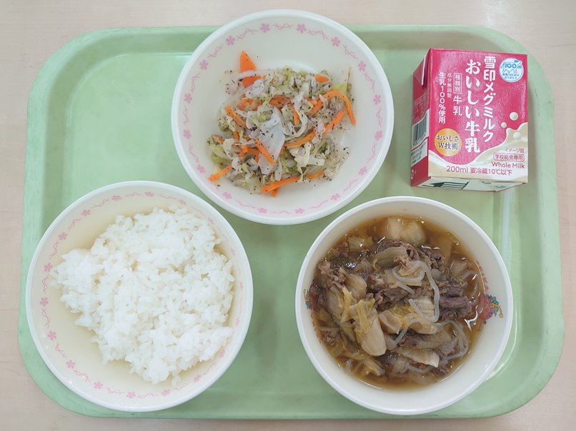 12月1日の給食 今日の給食 2025.12.03 ☆ごはん☆すきやき☆ゆかり和え☆牛乳 すき焼きという名前は、昔の農作業で使う道具の「すき」を鉄板代わりに使い、その上で肉や魚、豆腐などを焼いて食べたことが由来されています。この料理の特徴は、甘辛いしょうゆで煮込む点です。使う具材や味付けは、家庭や地域によって少しずつ違うと言われています。牛肉を使うのが一般的ですが、地域によっては豚肉や鶏肉をつかうこともあります。 Post Views: 3