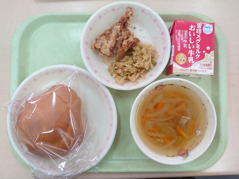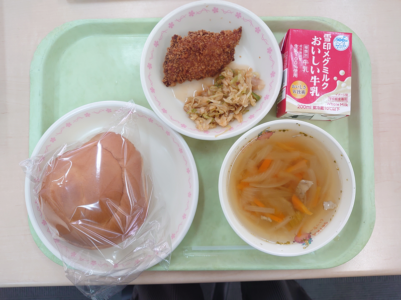 12月3日の給食 今日の給食 2025.12.10 ☆バーガーパン☆セレクトおかず☆添え野菜☆オニオンスープ☆牛乳 今日はセレクト給食でした。とんかつかフライドチキンを選び、添え野菜をバーガーパンにはさんで食べました。自分で選んだおかずを食べるのがわくわくしている児童がたくさん見られました。 Post Views: 3