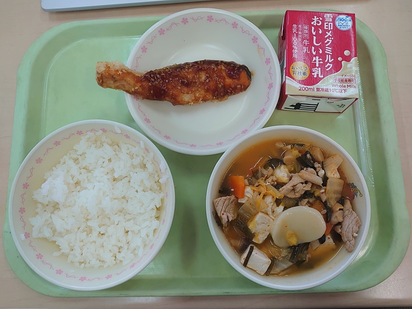 12月9日の給食 今日の給食 2025.12.10 ☆ごはん☆鮭のごまがらめ☆豆腐チゲ☆牛乳 日本では「チゲ」というと、ピリ辛の鍋というイメージがありますが、韓国では鍋そのものを意味します。肉や豆腐、野菜など好きなものを入れ、スープを変えることでいろいろなチゲを楽しめます。今日の給食では、韓国のおもち「トック」や豆腐を入れ、みそやキムチで味付けした体の温まるチゲにしました。 Post Views: 6
