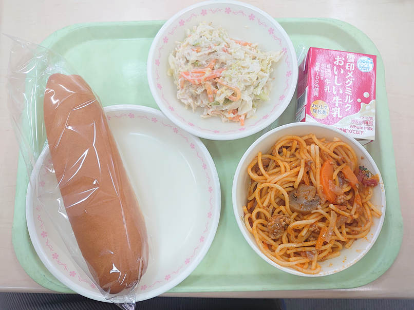 12月17日の給食 今日の給食 2025.12.19 ☆小型パン☆マリオも大好きミートスパゲティ☆ごまマヨサラダ☆牛乳 今日は、食育の日献立です。今月は、スーパーマリオに登場する「マリオ」が好きなスパゲティを使った「ミートスパゲティ」です。ミートソースには。ひき肉とたまねぎ、にんじん、セロリ、にんにく、しょうがなどのたくさんの野菜が使われています。マリオのように力いっぱい活動するためにもしっかり食べてパワーをチャージしましょう! Post Views: 3