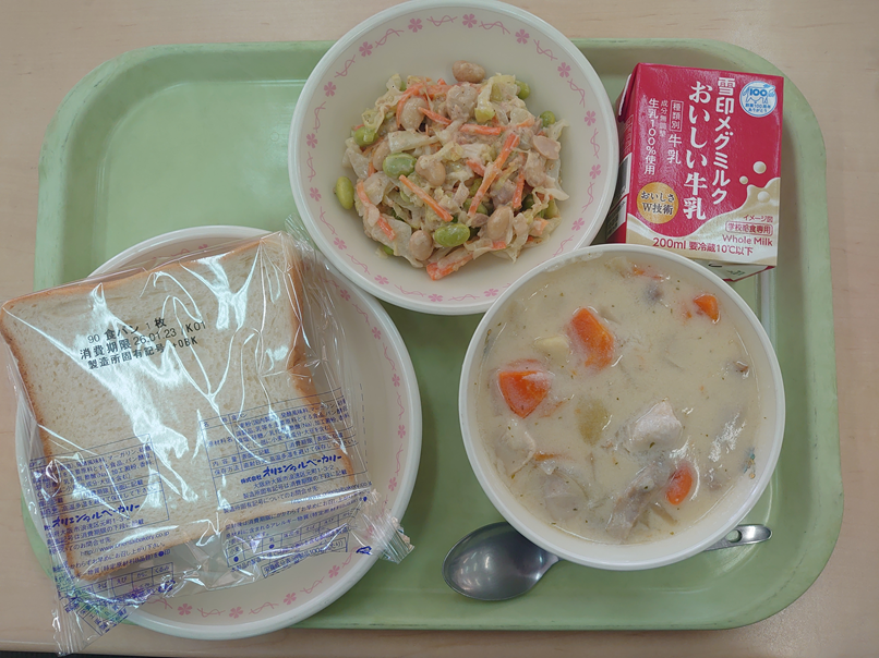 1月21日の給食 今日の給食 2026.01.28 ☆食パン☆豆サラダ☆クリームシチュー☆牛乳 今日の「豆サラダ」には枝豆と大豆が入っています。みなさんは、枝豆と大豆が同じ豆ということを知っていますか?まだ若いうちに収穫したものが枝豆で、収穫せず畑で育て続けると大豆になります。どちらもたんぱく質が豊富で、体をつくる大切な栄養素を含んでいます。 Post Views: 28