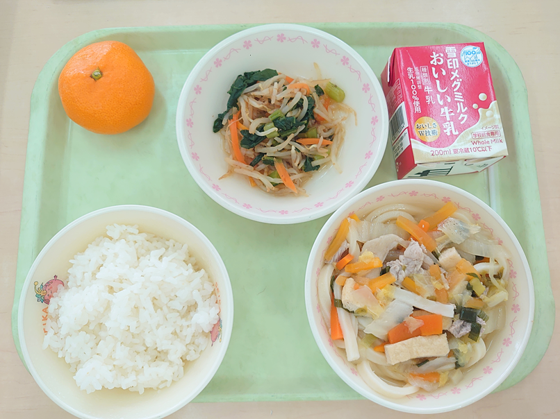 1月30日の給食 今日の給食 2026.02.04 ☆ごはん☆うま塩豚うどん☆もやしと小松菜の土佐和え☆牛乳 給食週間最終日は、うま味を味わう献立です。うま味を利用した「だし」は、日本の食文化に欠かせない存在です。昆布やかつお節などの素材からとる「だし」には、うま味がたっぷり含まれています。うま味は、料理に深みを与えます。「だし」を使うことで、塩分を控えながらも美味しさを引き出すことができ、健康的な食事にもつながります。5日間で紹介した5つの味は、毎日の給食にたくさんかくれています。これからもいろんな味を探してみてください。 Post Views: 2