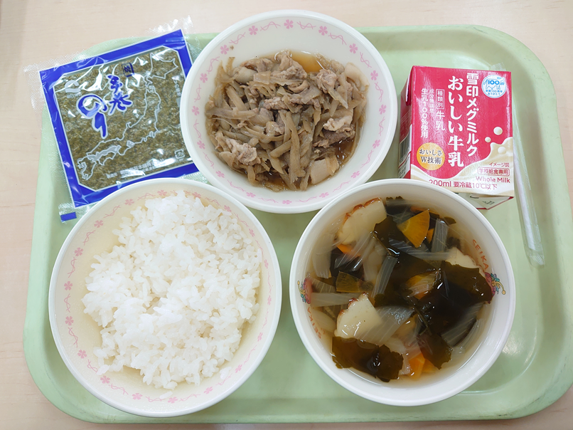 2月3日の給食 今日の給食 2026.02.04 ☆酢飯☆しぐれ煮☆手巻きのり☆かまぼこのすまし汁☆牛乳 今日は節分献立です。節分という言葉には「季節を分ける」という意味があり、冬と春を分ける日の前日を節分と呼びます。節分には神様がいるとされる方角「恵方」を向いて、ふと巻きずしを食べます。給食では、手巻きのりに酢飯としぐれ煮を巻いて食べました。 Post Views: 3