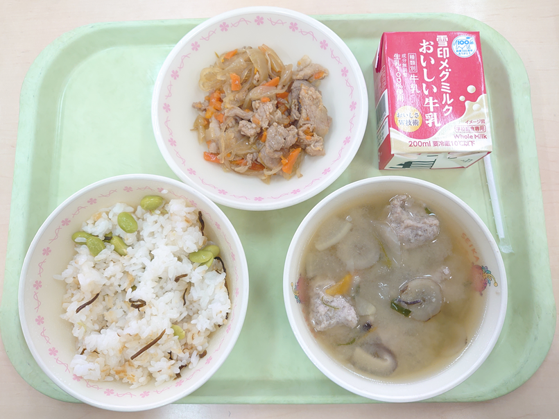 2月12日の給食 今日の給食 2026.02.13 ☆枝豆ごはん☆豚肉ともやしの中華炒め☆肉団子汁☆牛乳 今日は、精華台小学校の6年生が考えた献立で、テーマは「色んなところにおいしく野菜が転がり込んでいる」です。その言葉の通り、どの料理にも、おいしく調理された野菜が、まさに「転がり込む」ようにたくさん入っています。6年生の思いがつまった野菜たっぷりのメニューをしっかり食べてください。 Post Views: 4
