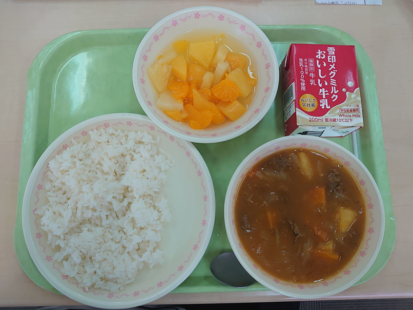4月16日の給食 今日の給食 2026.04.16 ☆麦ごはん☆きらきらビーフカレー☆フルーツポンチ☆牛乳 今日から1年生の給食が始まりました。きらきらカレーはカレールゥを使わず、米粉でとろみをつけた精華町の特製のカレーです。今日は牛肉を使ったビーフカレーですが、精華町では、ポークカレーやチキンカレー、ひき肉を使ったドライカレーなどいろいろなカレーがあるので楽しみにしていてください。 Post Views: 9