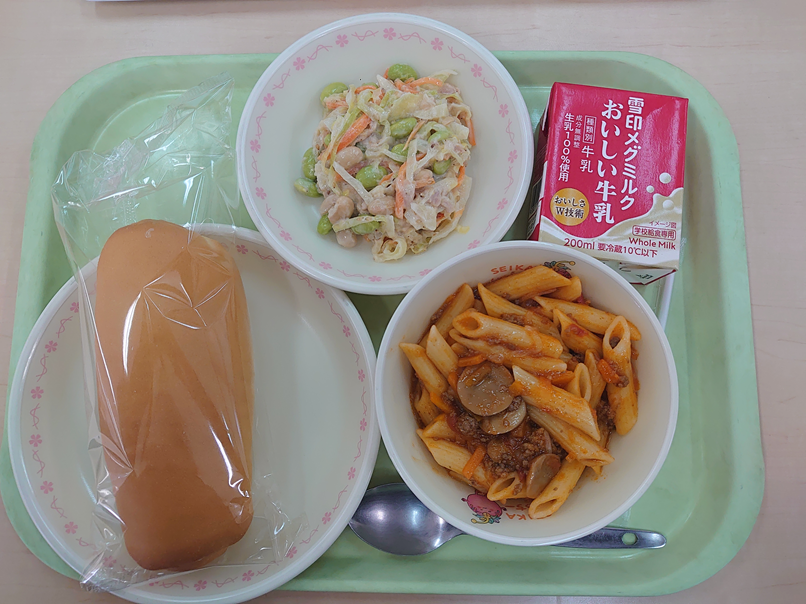 4月27日の給食 今日の給食 2026.04.28 ☆小型コッペパン☆ペンネのミートソース☆まめサラダ☆牛乳 ペンネはパスタの一種で、イタリア語でペンという意味です。ペン先のように両端を斜めに切った筒状のパスタで、形がペンに似ていることからこの呼び方になりました。穴が空いているのは、生地を作る時に早く乾燥させるためと、火の通りを早くするためです。 Post Views: 4