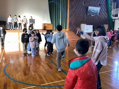 2学期 12月17日に大縄大会を行いました。これまで子どもたちは、業間休みを活用し、チームごとに練習を重ねてきました。大会当日は、どのチームも励まし合いながら、大きな声で数を数え、最後まで一生懸命取り組む姿が見られました。