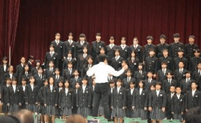 13日の朝、生徒会本部の生徒たちが加悦小学校へ行き、あいさつ運動を行いました。元気に「おはよう」と声を交わし、ハイタッチで児童を迎えました。19日にはつばきこども園を訪れ、園児たちを元気なあいさつで迎える予定です。