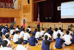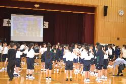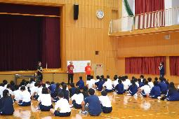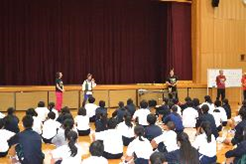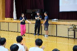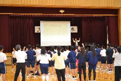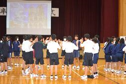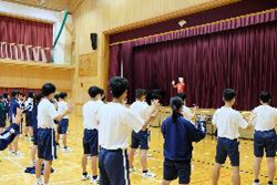 芸術鑑賞事前ワークショップ 学校だより(令和7年度) 2025.10.06 10月22日に行われる芸術鑑賞の事前ワークショップを行いました。今年度は劇団ショーマンシップによるミュージカル「ノートルダム物語」を鑑賞します。今回は5人の方が来校され、物語の説明や歌、パントマイムなどを練習しました。当日は8人の生徒が劇に出演します。 Post Views: 23