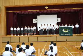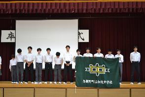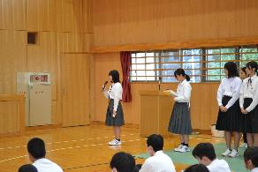 丹後ブロック中学校駅伝競走大会 壮行式 令和7年度日誌 2025.10.18 18日(土)に行われる駅伝大会の壮行式が行われました。生徒会代表の激励を受け、駅伝部の代表生徒から力強い言葉がありました。一人一人が加悦中生徒全員の思いを乗せてつながり、目標が達成されることを祈っています。 Post Views: 90