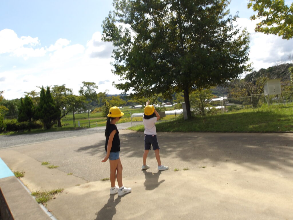 理科「かげと太陽」の学習では、影について考え、性質や仕組みについて調べています。影ふみ鬼ごっこを通してうまく逃げるためには、太陽と反対に向かって走ればいいことに気付いたり、遮光板を使って太陽の位置と影ができる関係について考えたりしています。