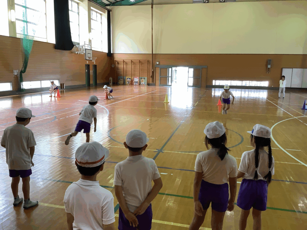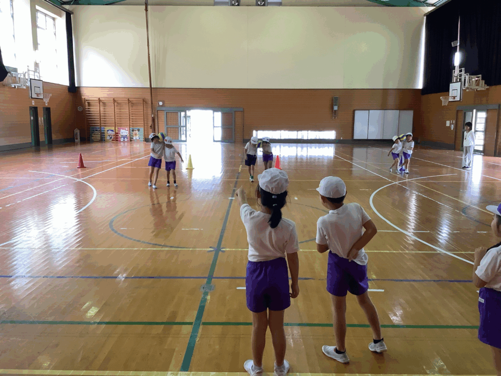 2年生の体育では多様な動きを作る運動遊びをしています。のびのびと体を動かしながら、どうぶつ歩きをしたり二人一組でボール運びをしたり、友達と工夫しながら楽しく体を動かすことができました。