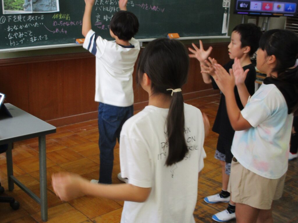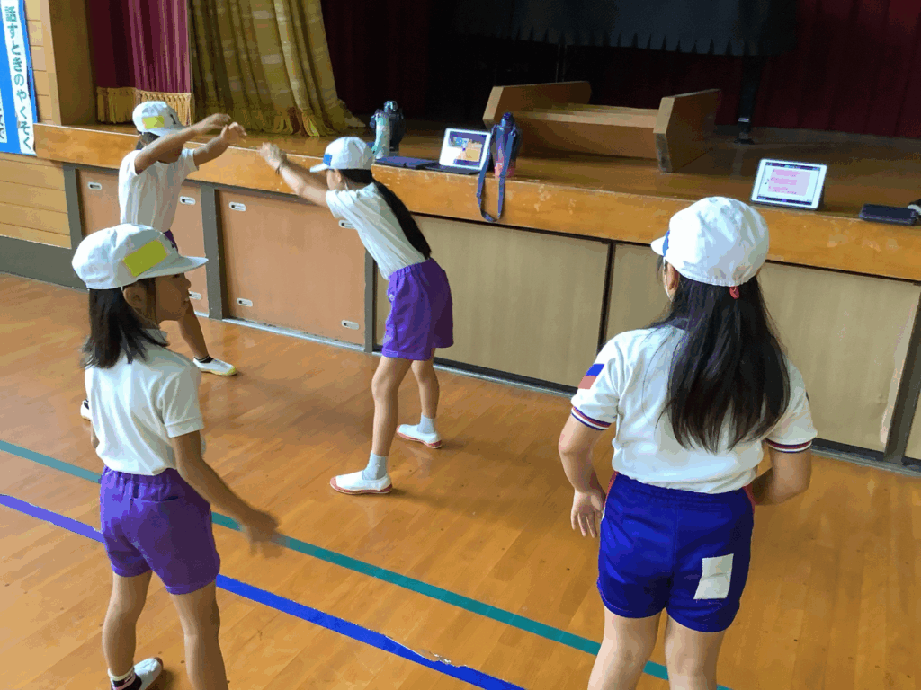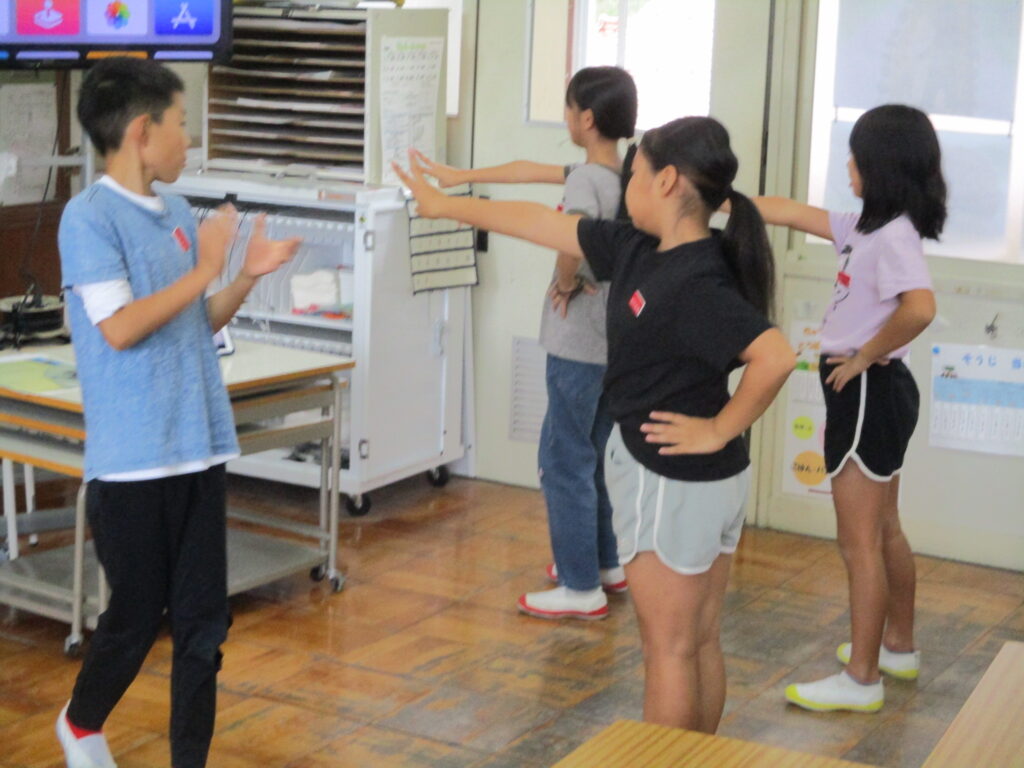 10月19日に行われる運動会で発表する表現運動に向けて練習をしています。